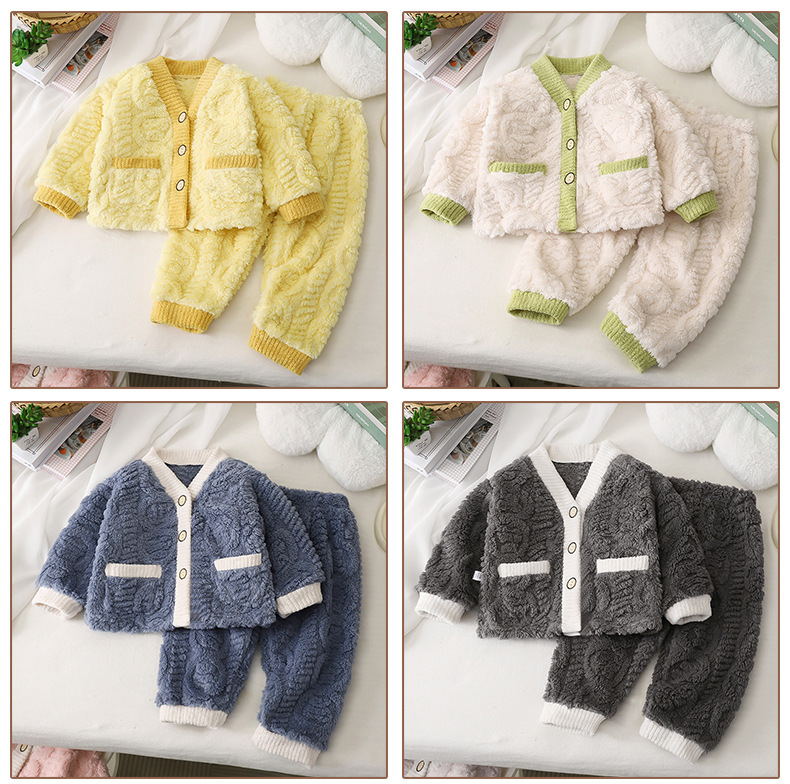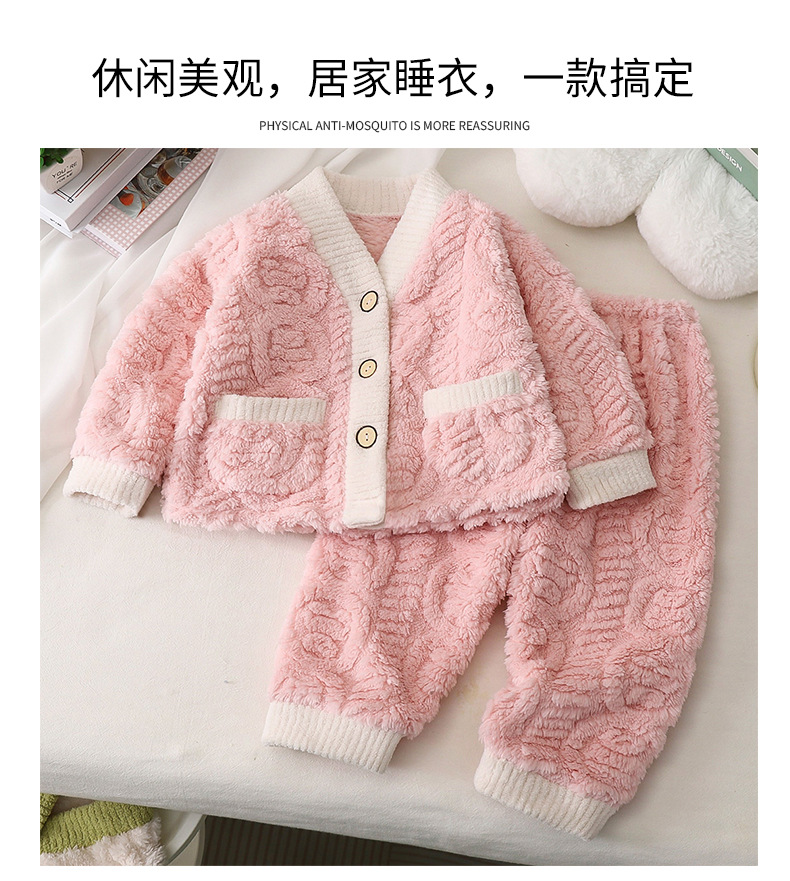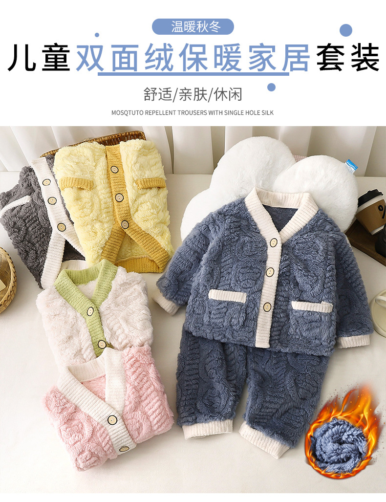 어린이 잠옷 세트 겨울 새 아기 기모 두꺼운 소년 집 옷 여아 잠옷 따뜻한 어린이 의류