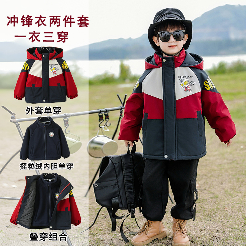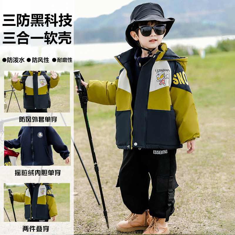 Altman Boy's Jacket Cotton 2024 가을 및 겨울 재킷 어린이 분리 가능한 3 대 1 겨울 양털