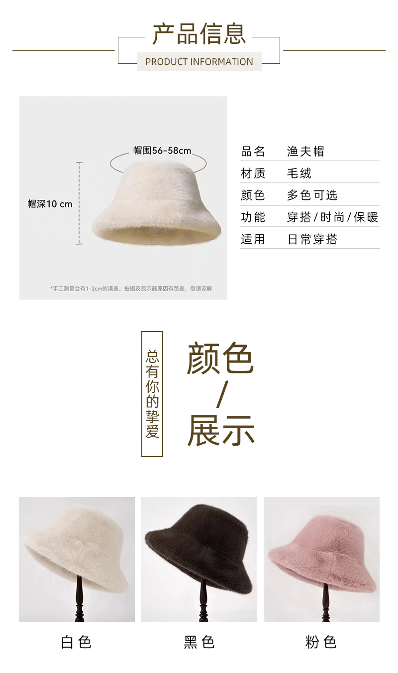 새로운 크로스보더 인조 밍크 퍼 플러시 어부 모자 여성용 가을 겨울 따뜻하고 패셔너블한 플러시 어부 모자 두꺼운 여성용 모자스토어 가기