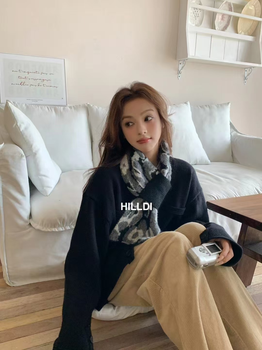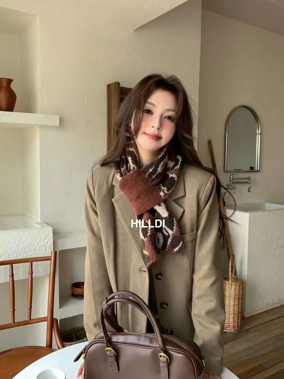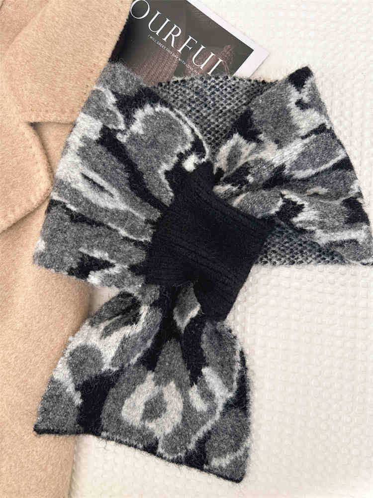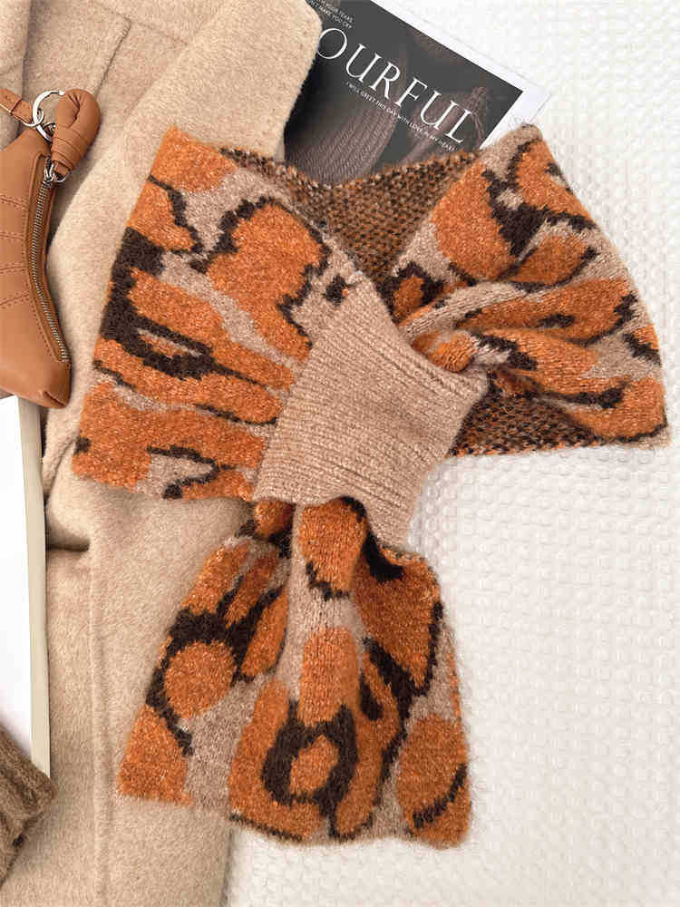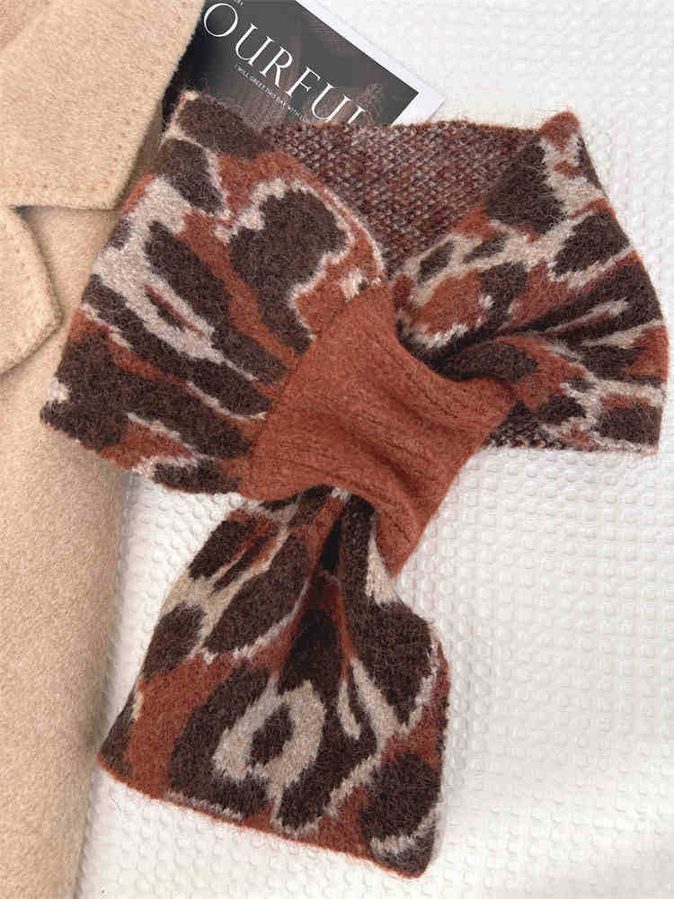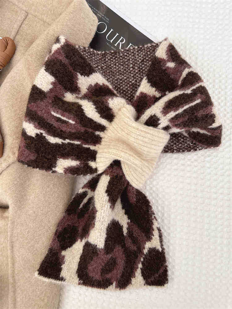 크로스 레오파드 무늬 작은 스카프 여자 2024 한국식 겨울 디자인 센스 따뜻한 양모 니트 스카프 학생 올매치스토어 가기