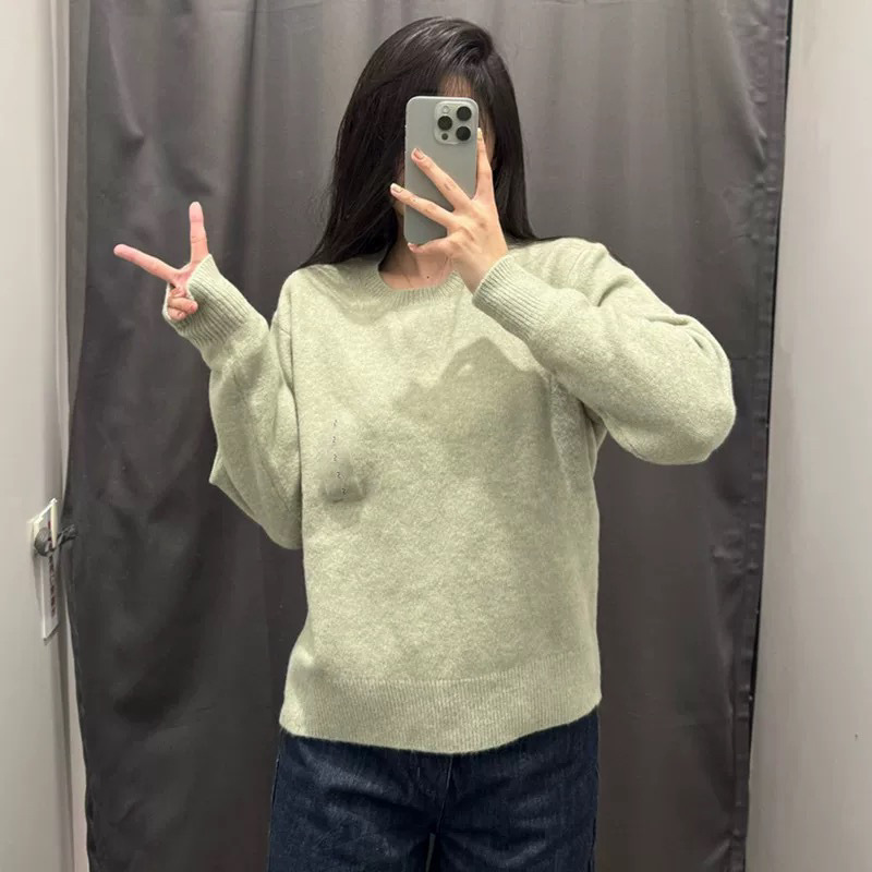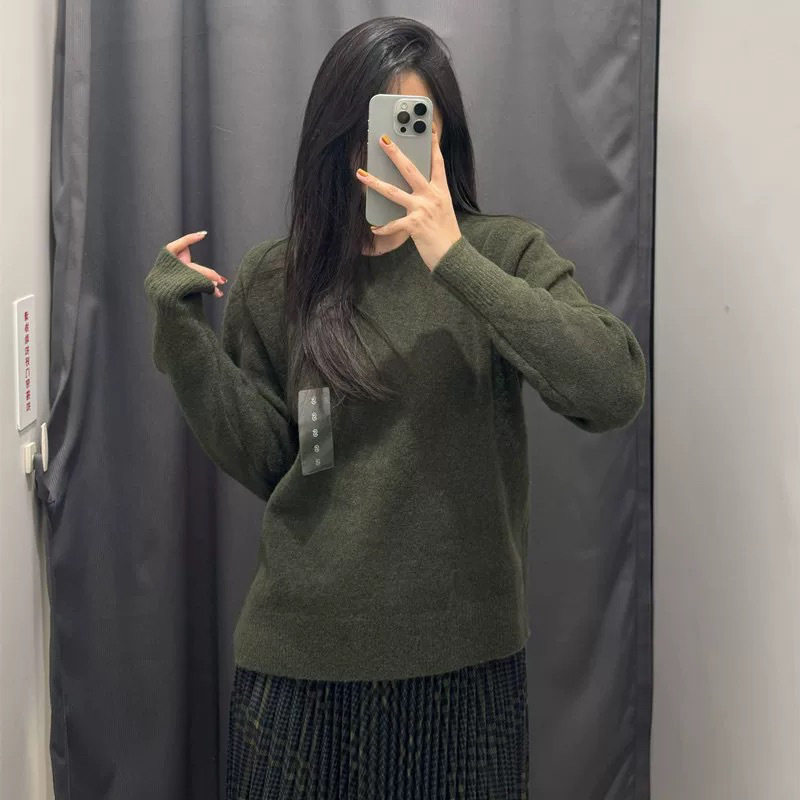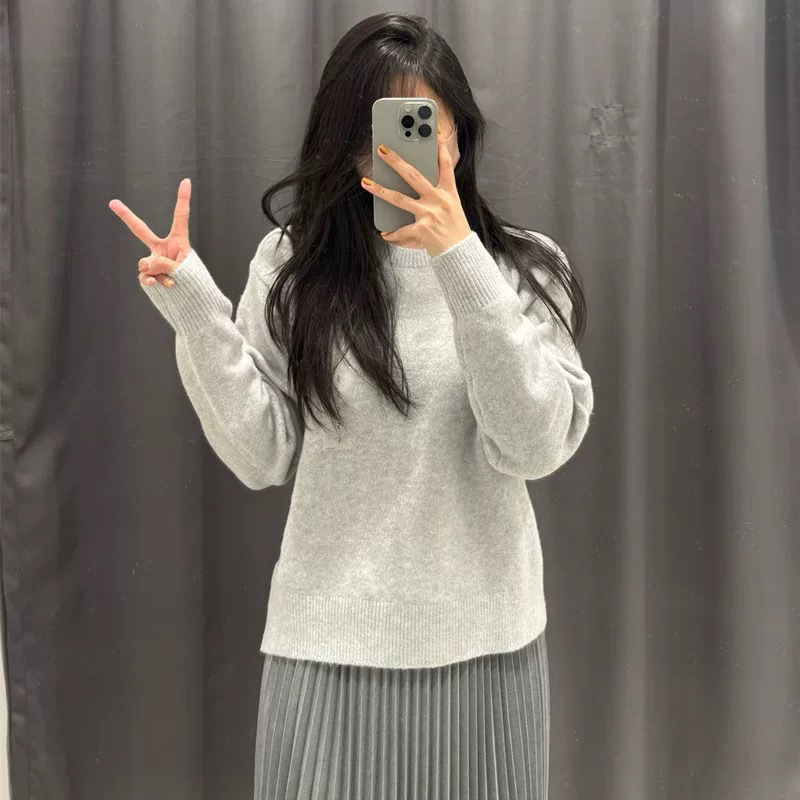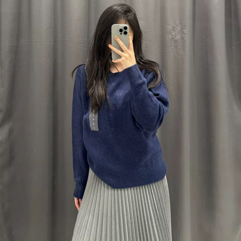 일본 여성 의류 Shufulei Crewneck 니트 스웨터 크루 넥 스웨터 루즈 소프트 왁스 탑 469429