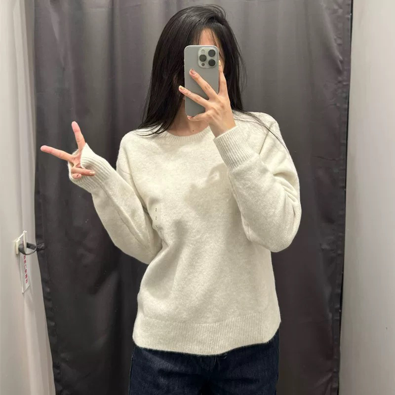 일본 여성 의류 Shufulei Crewneck 니트 스웨터 크루 넥 스웨터 루즈 소프트 왁스 탑 469429스토어 가기