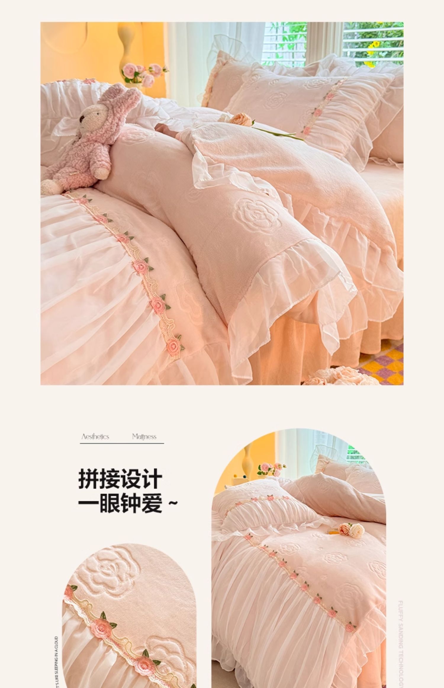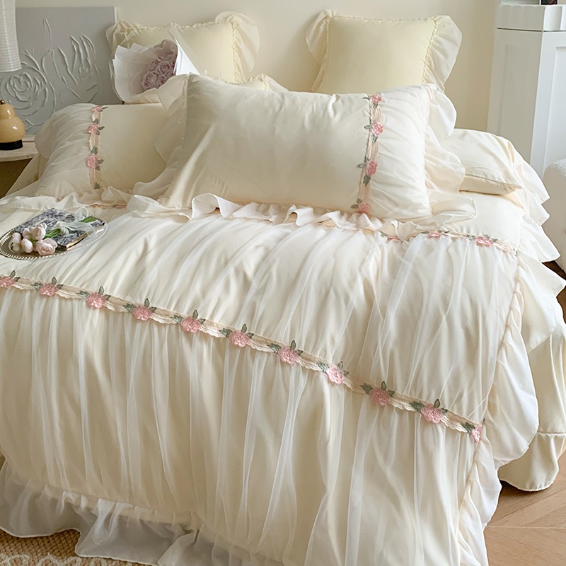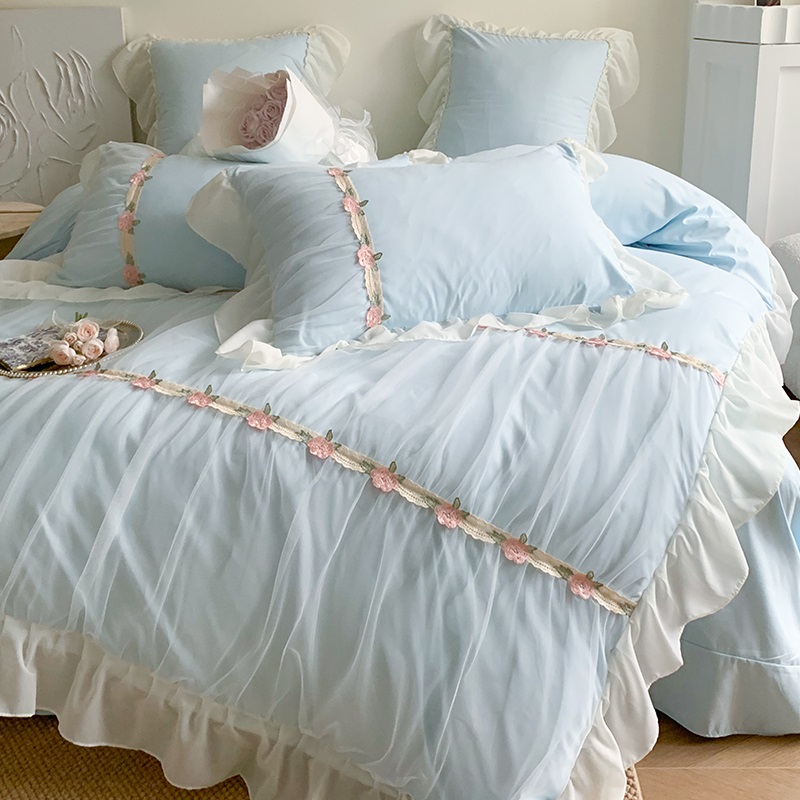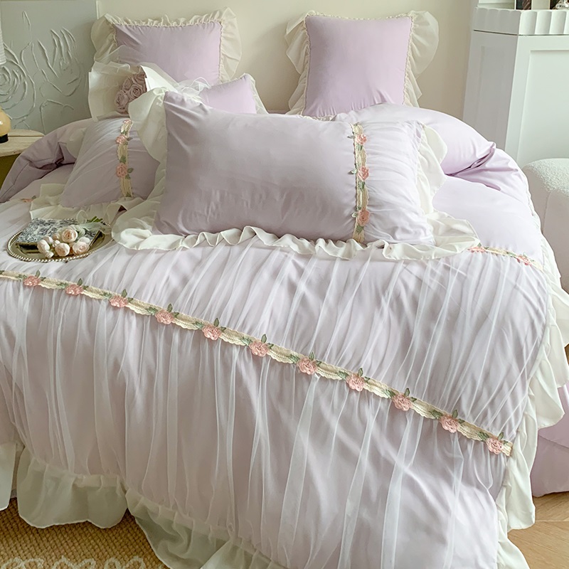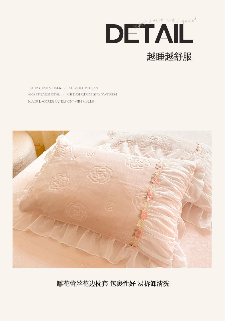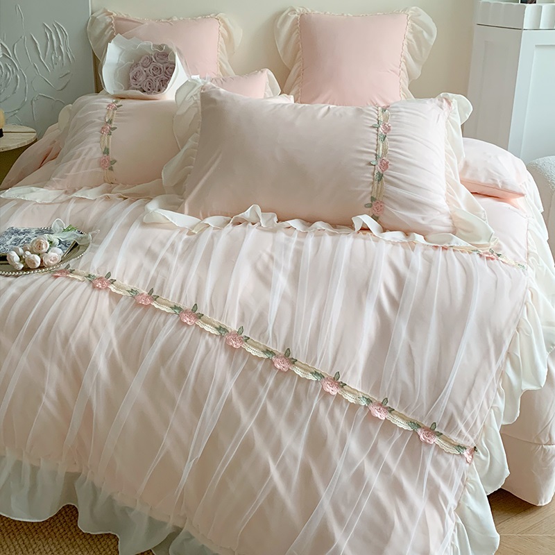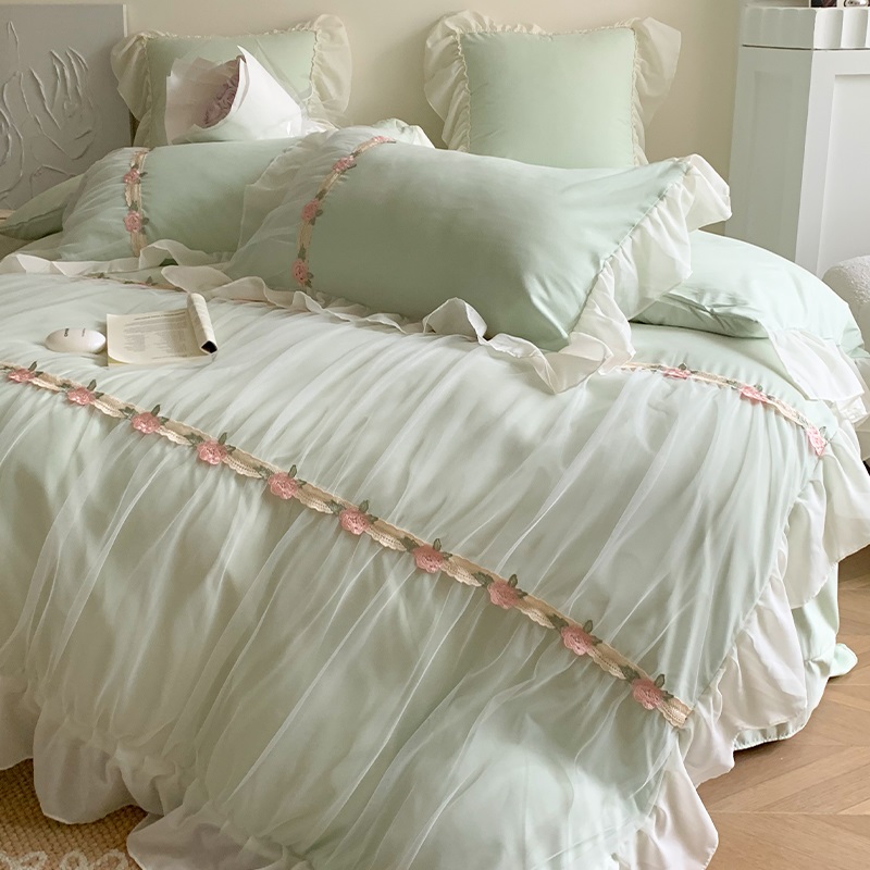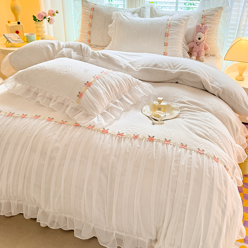 공주 스타일의 양면 우유 벨벳 4 종 침구 겨울 두꺼운 플랜지 산호 벨벳 퀼트 커버 침대 시트