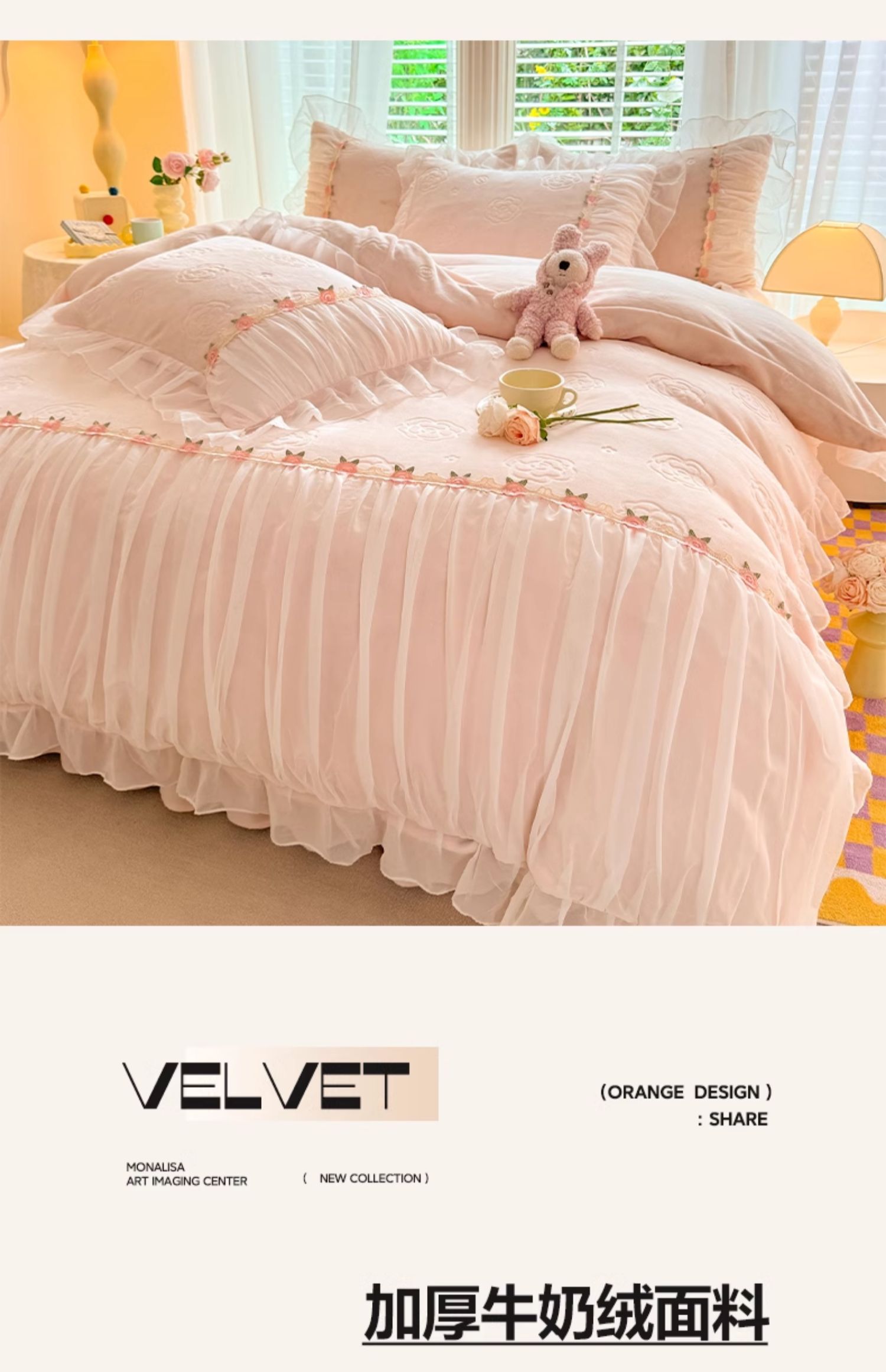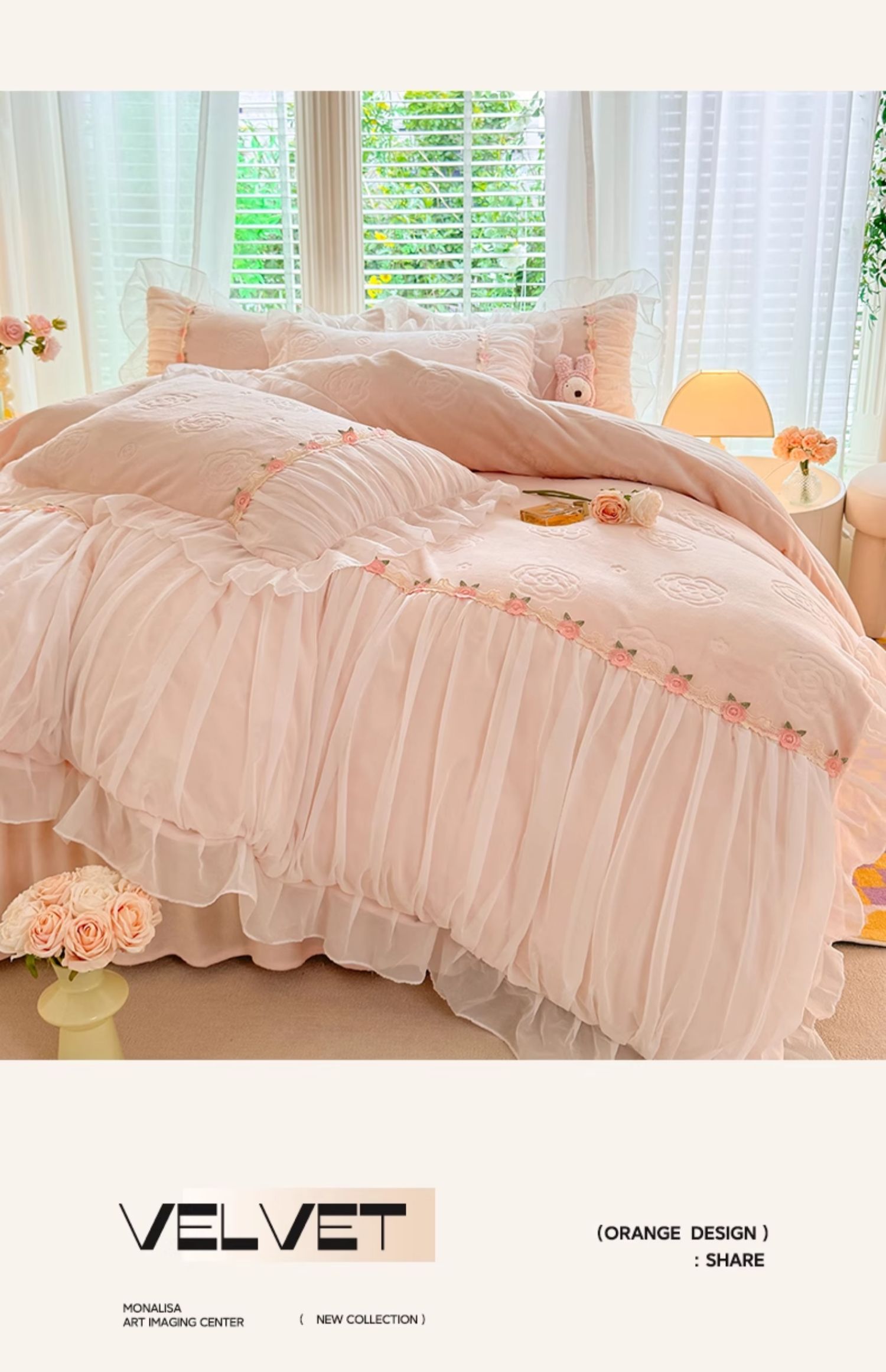 • 벨벳 빅토리아 시크릿-로즈 핑크 [밀크 벨벳 조각, 절묘한 레이스 디자인]