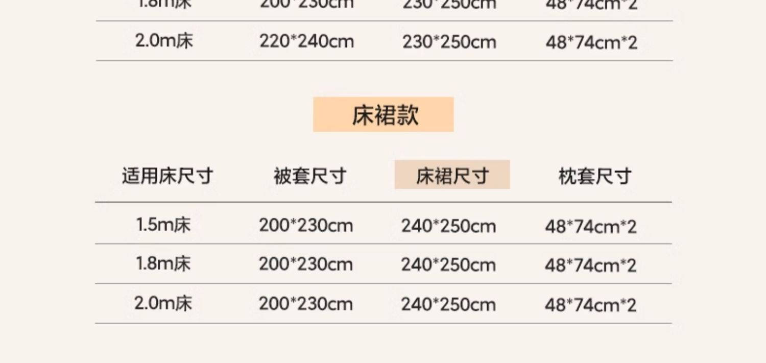 • 1.8m 침대 [침대 스커트 4종 세트] - 200x230cm 이불심에 적합
