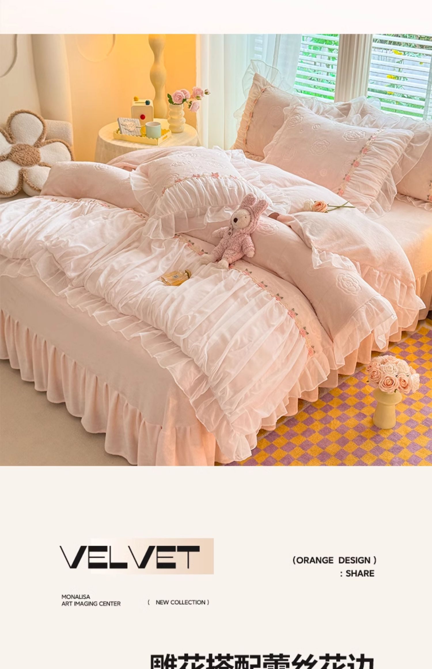 • 벨벳 빅토리아 시크릿-멜론 옐로우 [밀크 벨벳 조각, 절묘한 레이스 디자인]