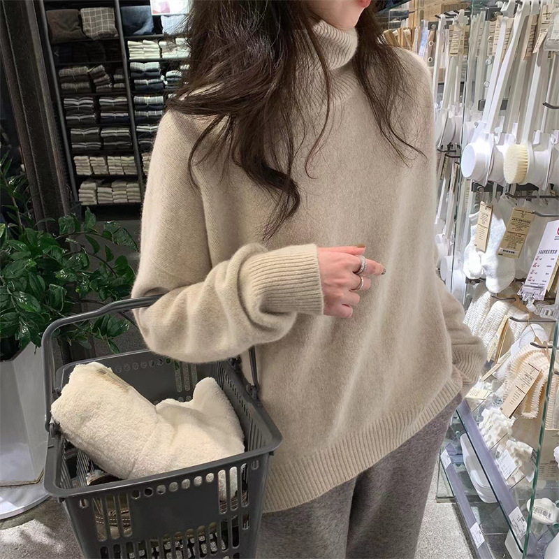 게으른 스타일 높은 칼라 솔리드 컬러 외부 스웨터 여성의 가을과 겨울 한국 스타일 간단한 부드러운 왁스 내베이스 스웨터스토어 가기