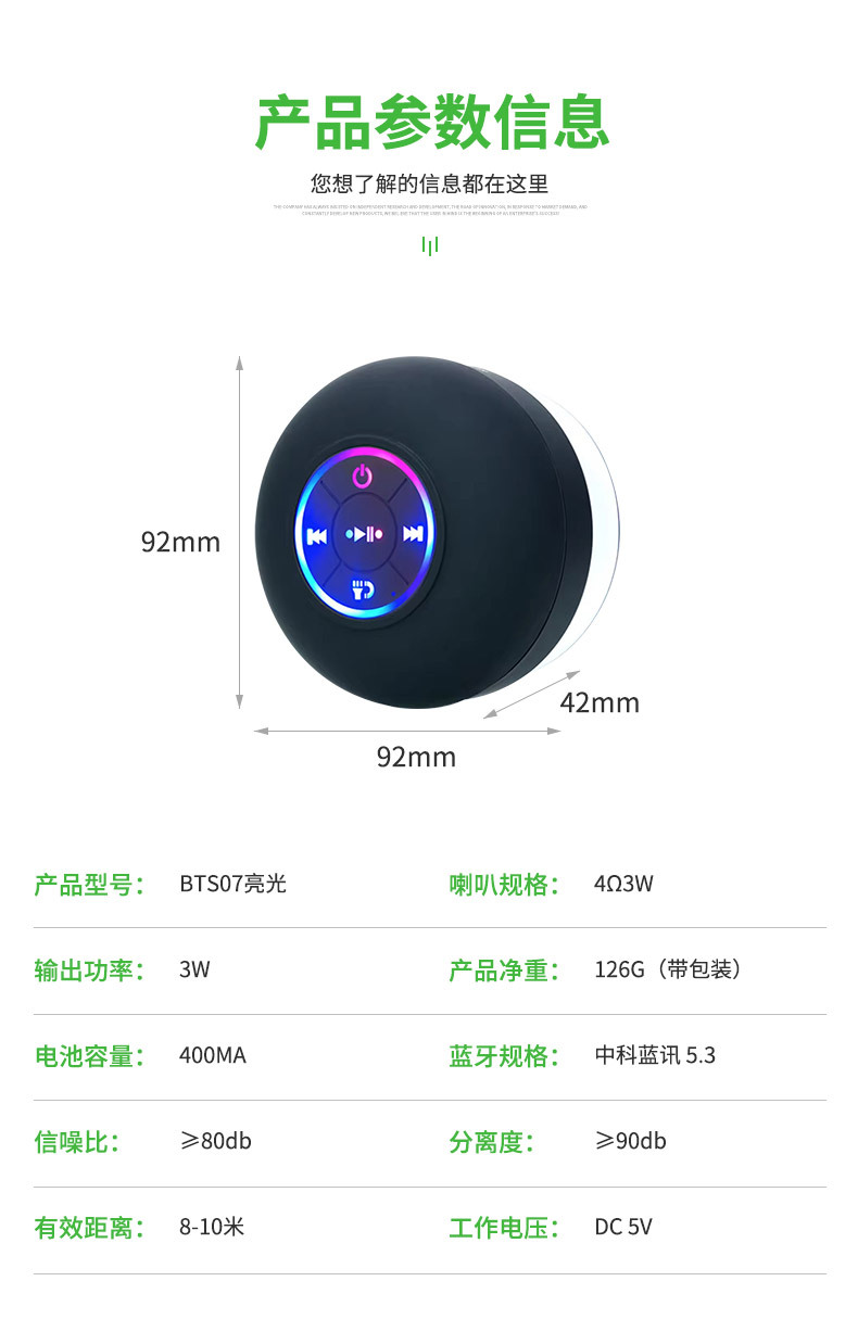 대형 흡입 컵 블루투스 스피커 LED 조명 빛나는 방수 욕실 블루투스 스피커 휴대용 블루투스 스피커 스팟 도매스토어 가기