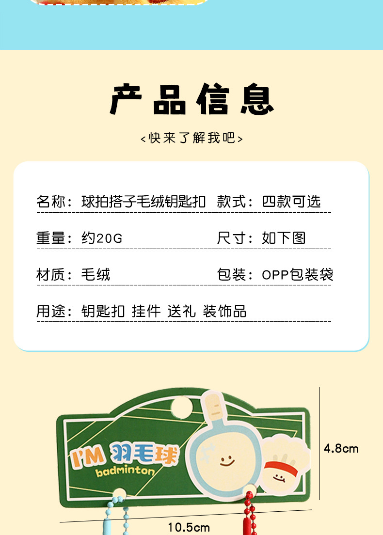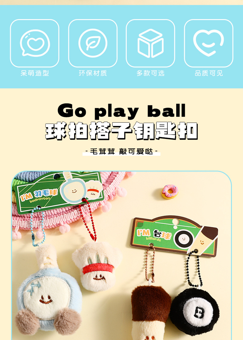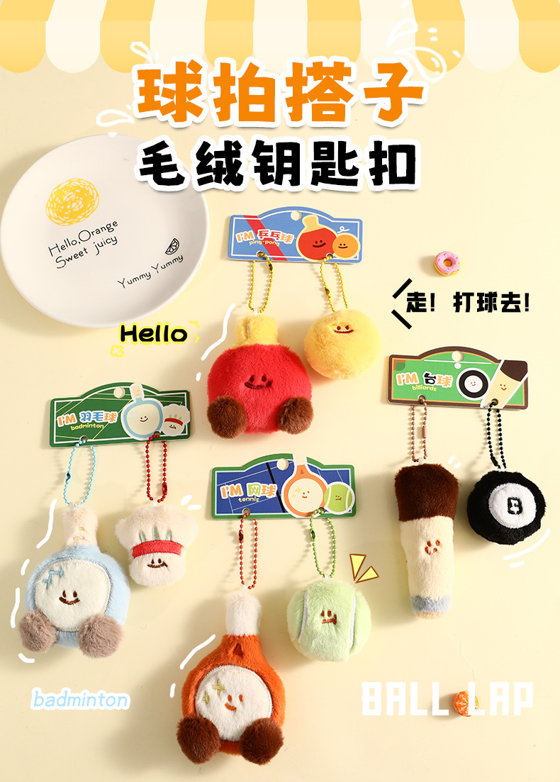 만화 우아한 정품 배드민턴 봉제 키 체인 펜던트 창조적 인 가방 작은 장식품 자동차 키 체인 도매스토어 가기