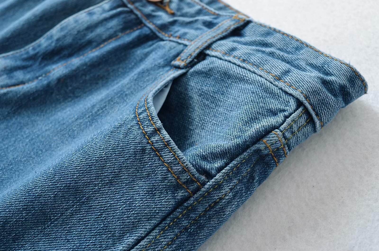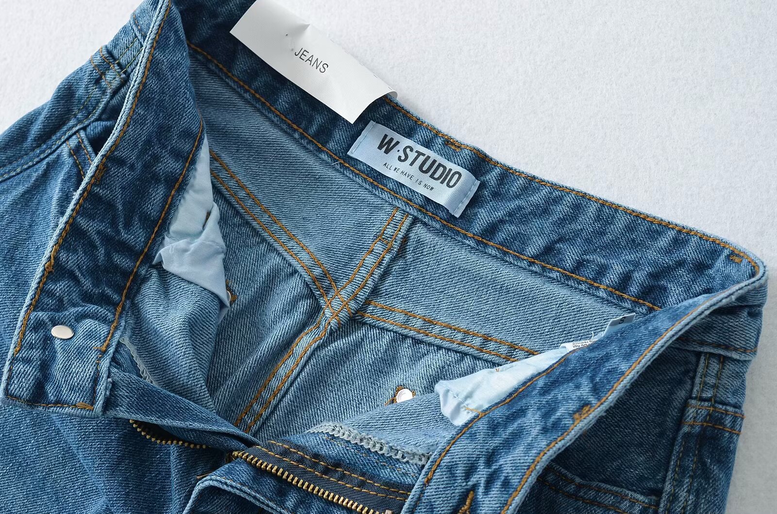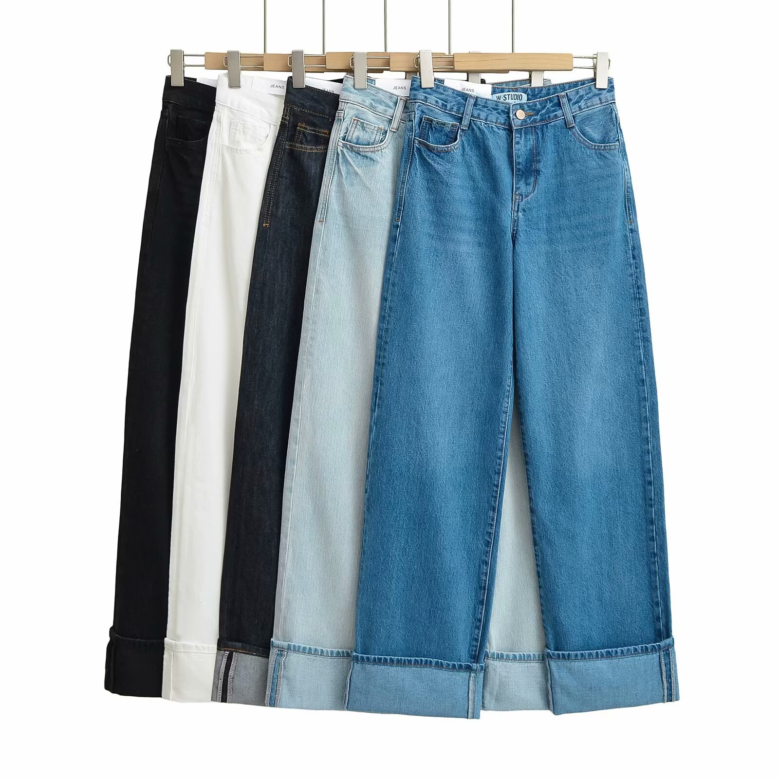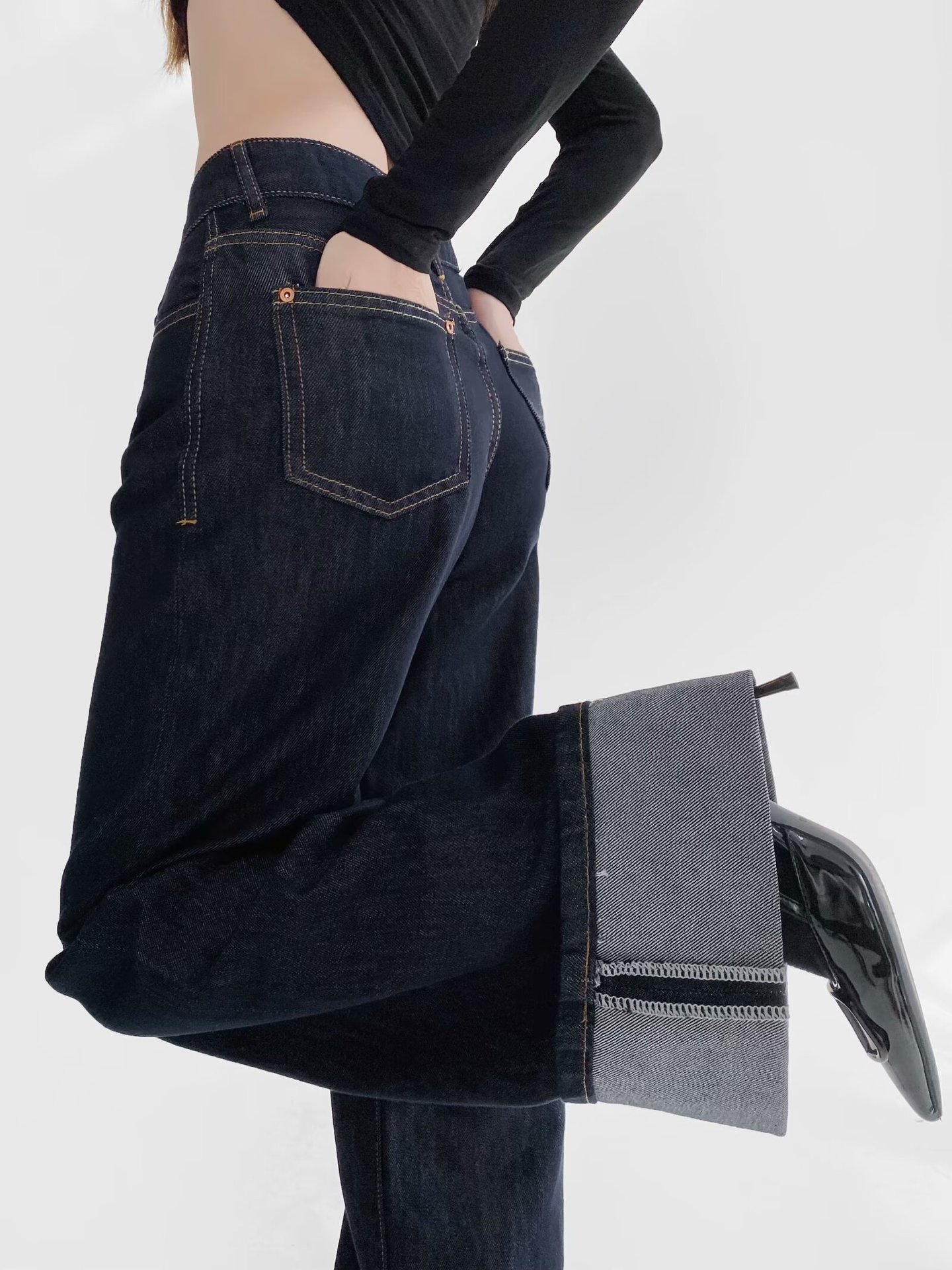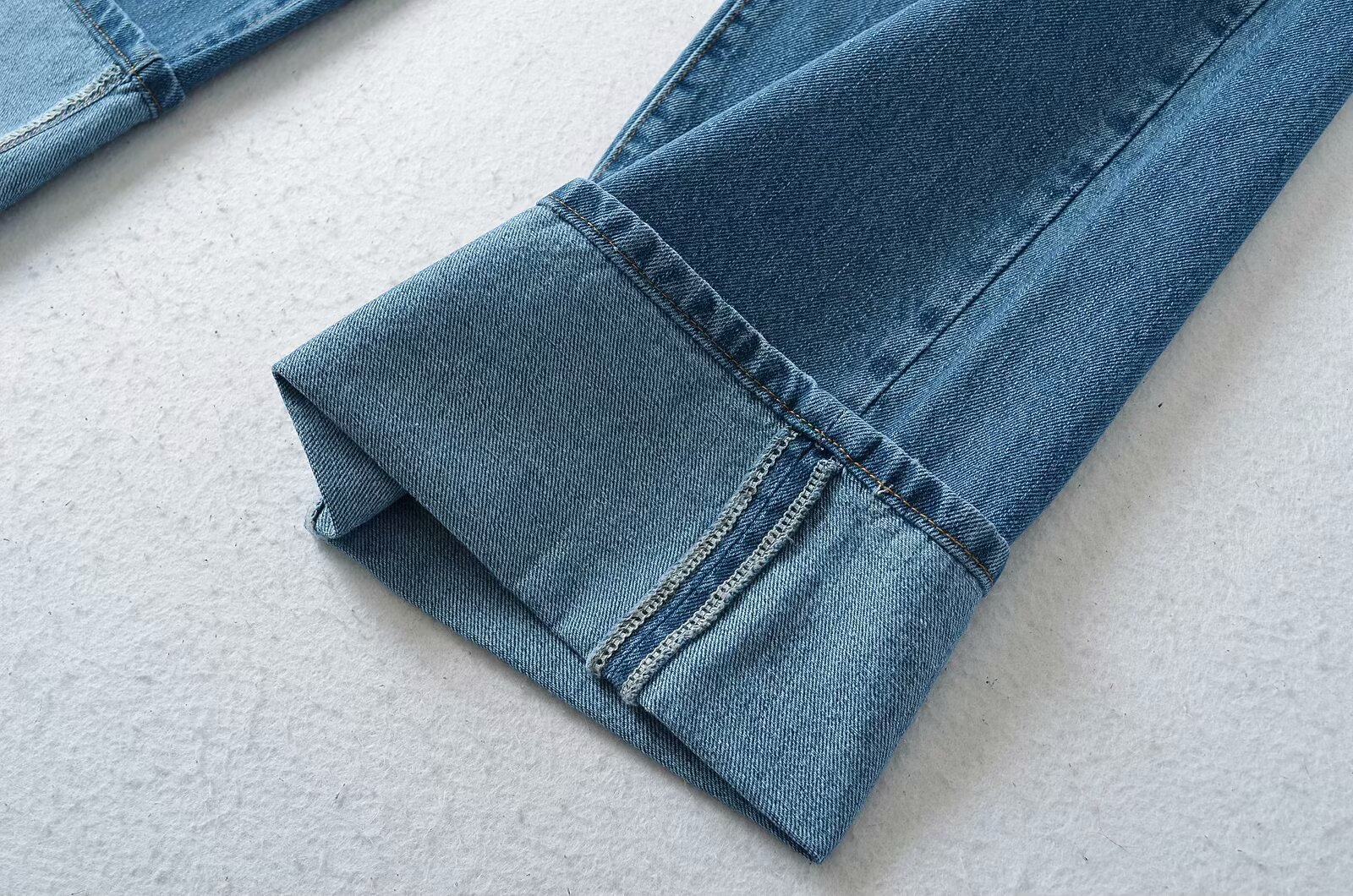 유럽과 미국 스타일의 높은 허리 느슨한 캐주얼 단색 스트레이트 다리 바지 넓은 가장자리 컬링 엑스트라 롱 레트로 스타일 청바지 올매치스토어 가기