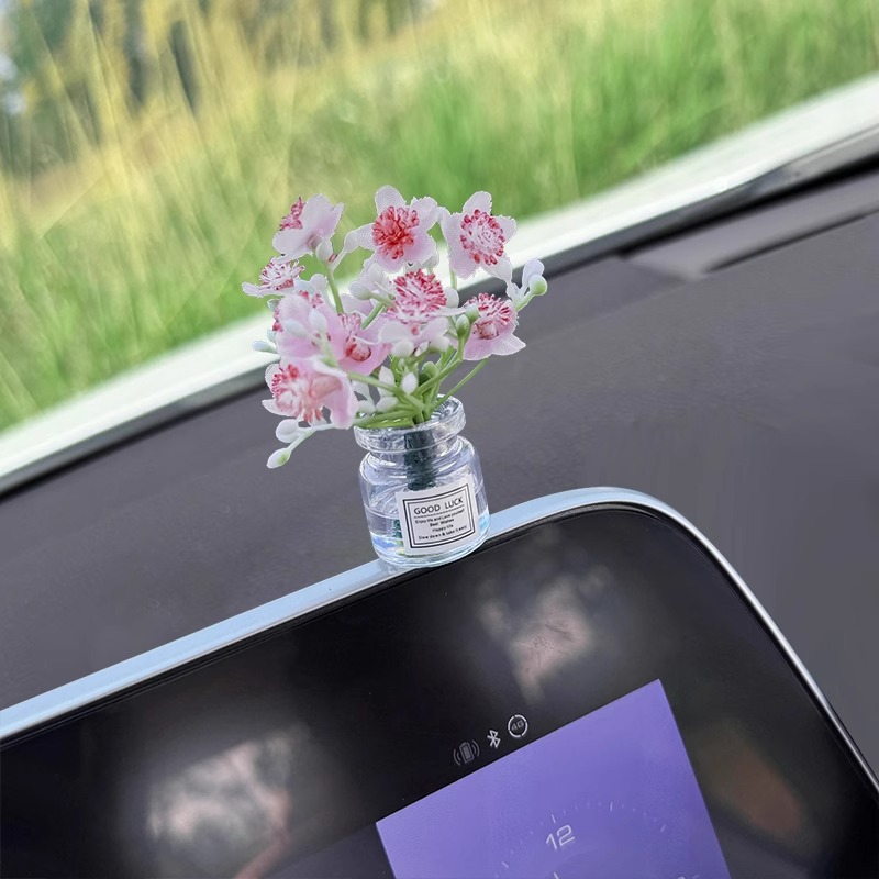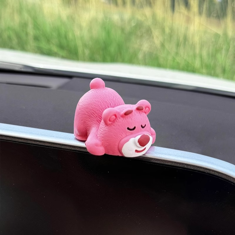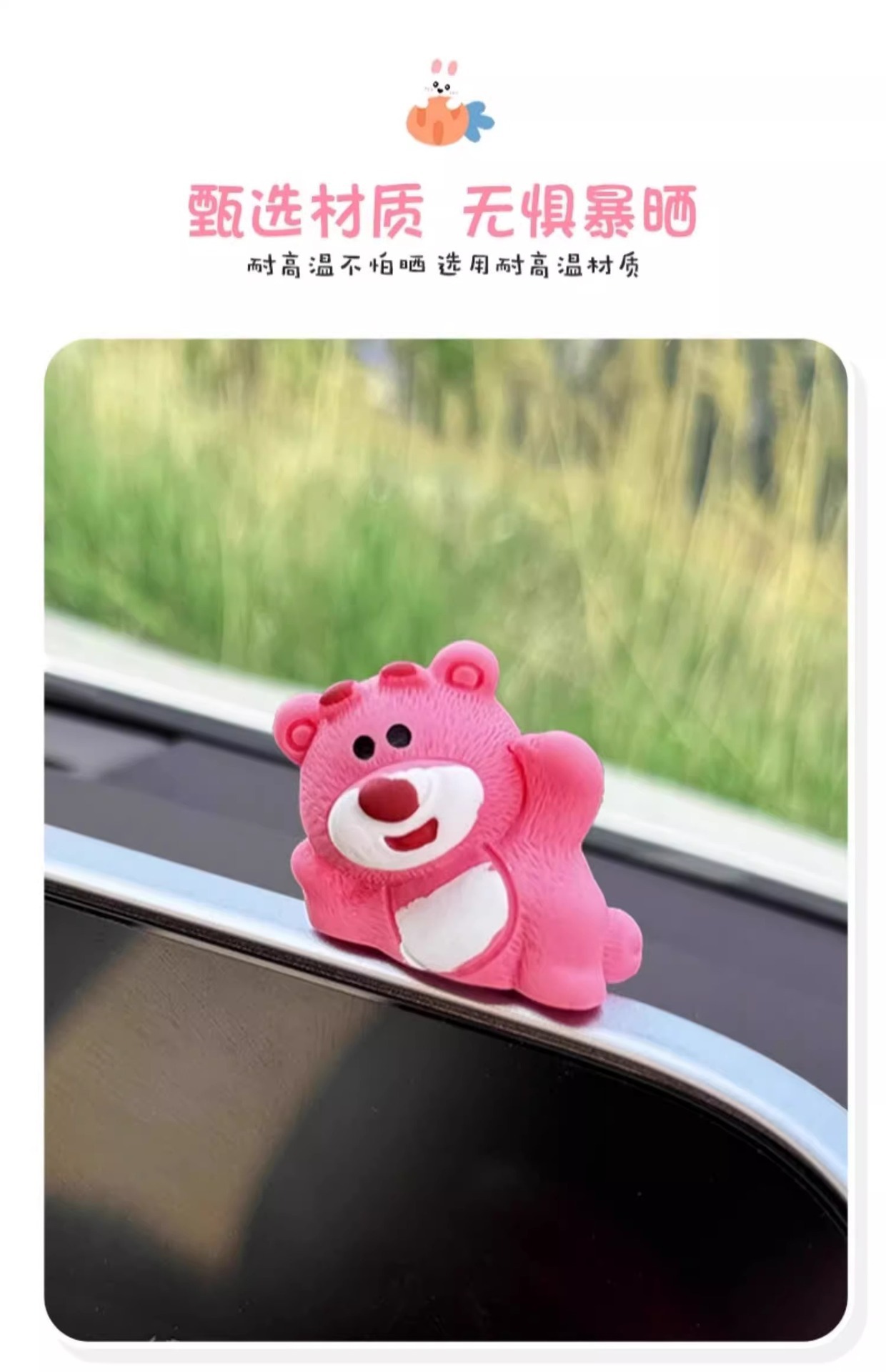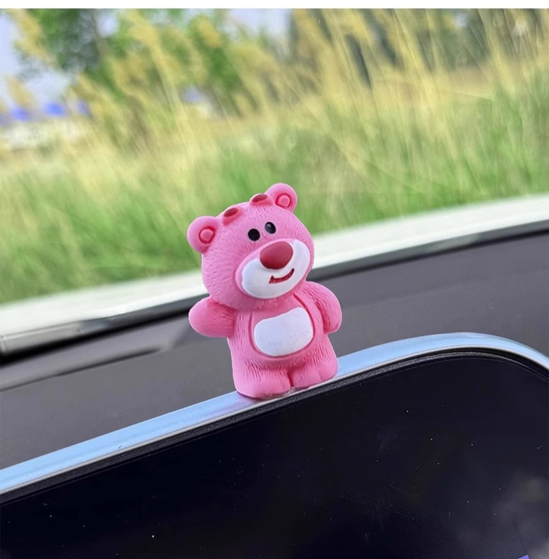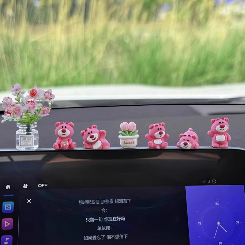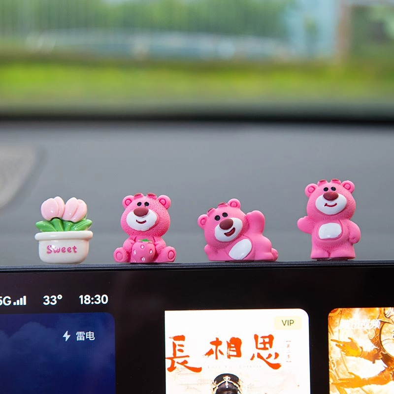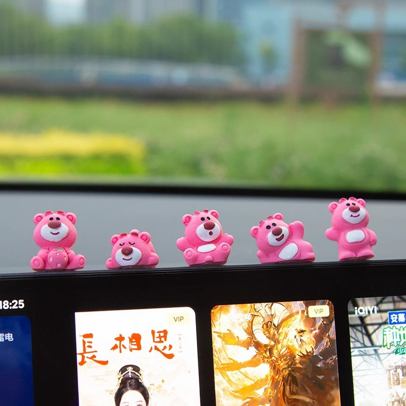 자동차 장식품 귀여운 딸기 곰 중앙 제어 화면 압축 작은 인형 자동차 액세서리 새로운 인터넷 빨간색 장식 장식품