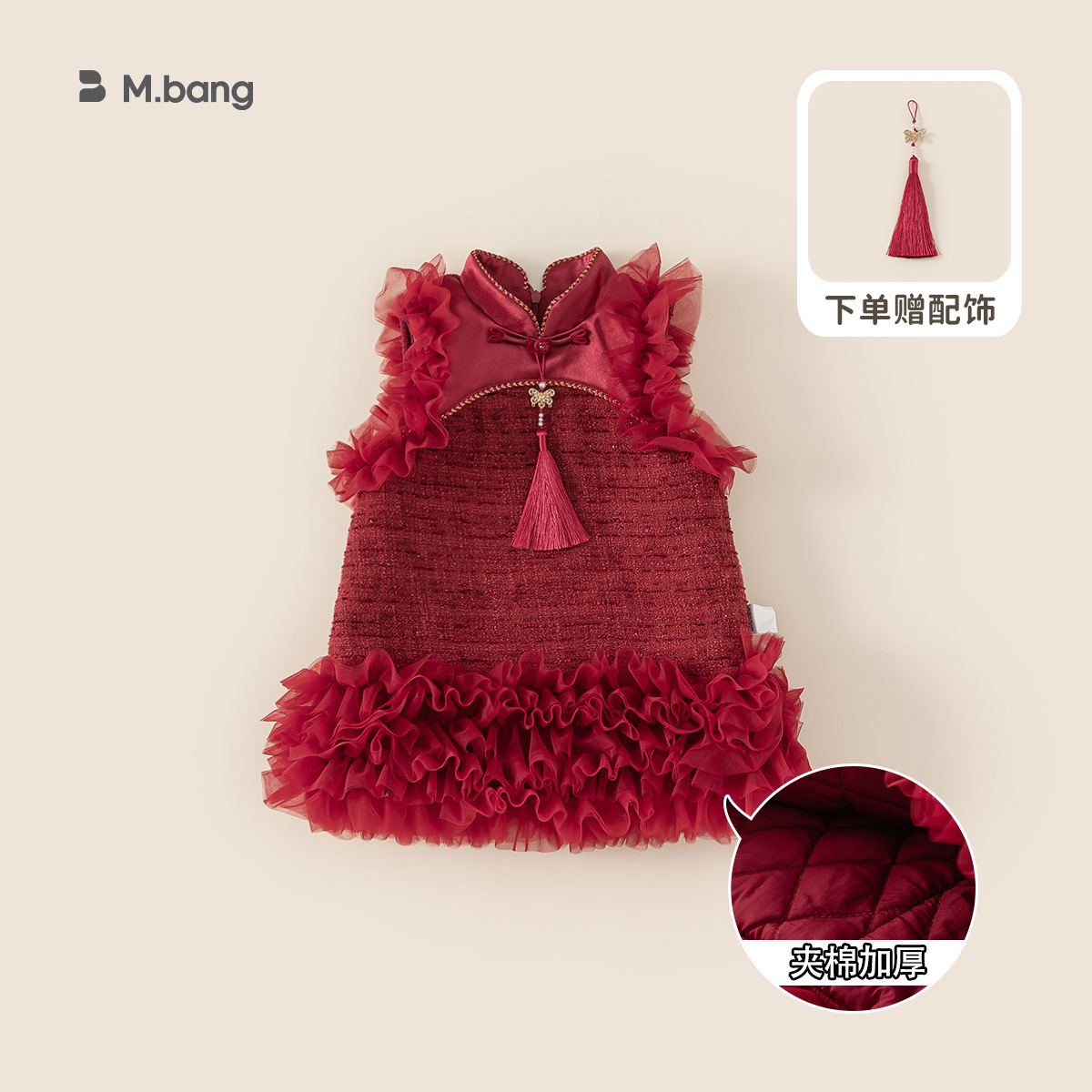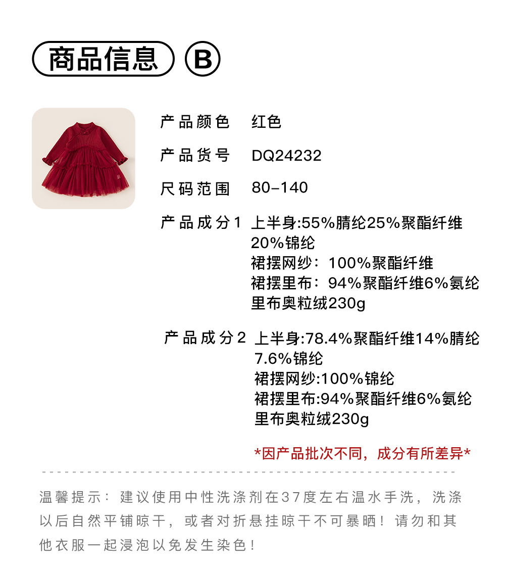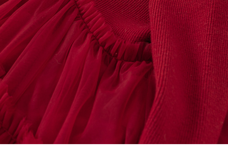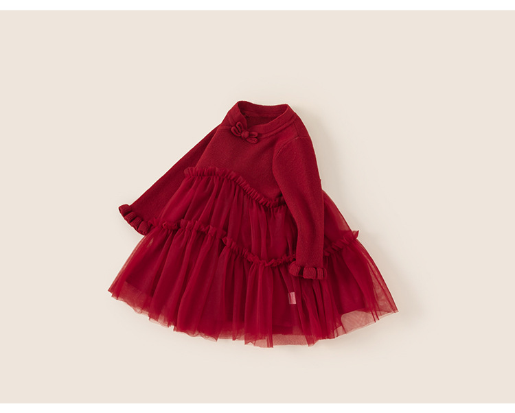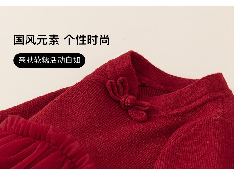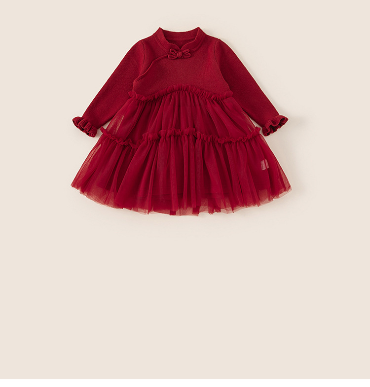 유바오 어린이 의류 여아 새해 치마 새 중국식 버클 아기 소녀 레드 메쉬 스웨터 원피스 새해 원피스