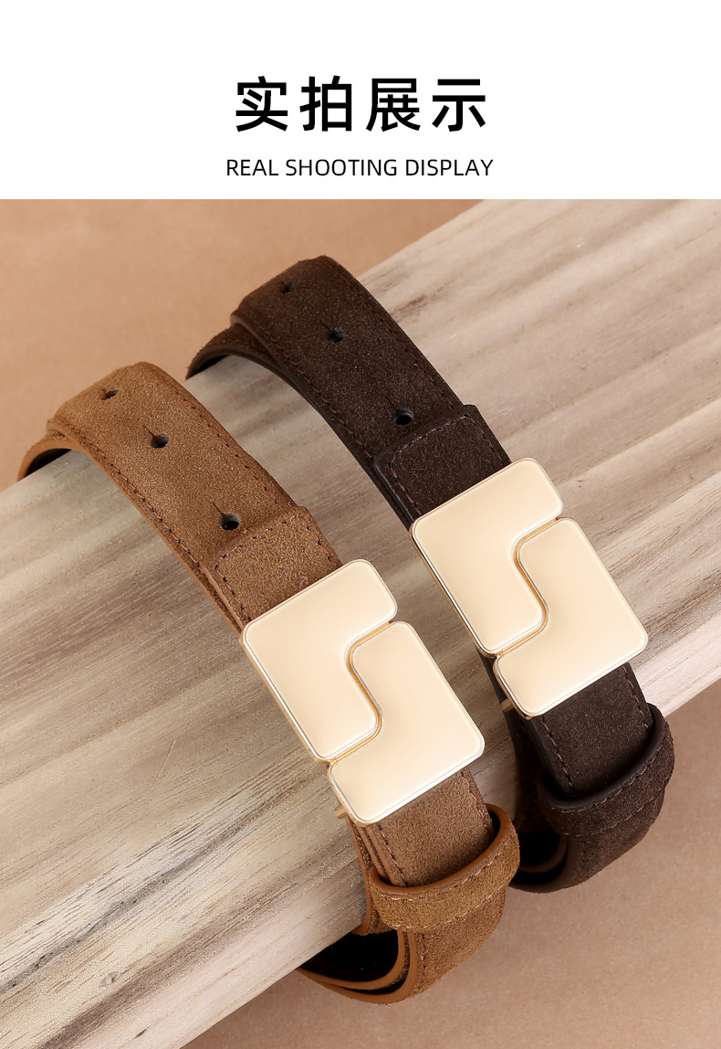2024 새로운 한국 스타일 정품 가죽 여성 벨트 틈새 디자인 소 벨벳 벨트 청바지 공장 재고스토어 가기