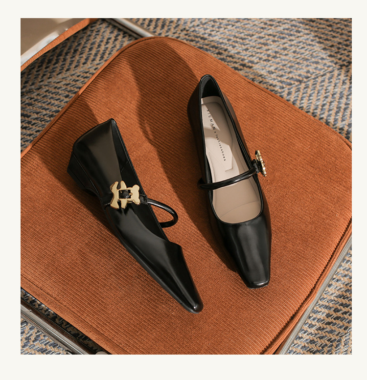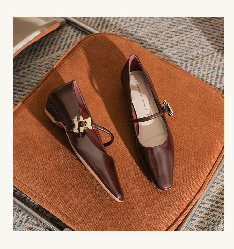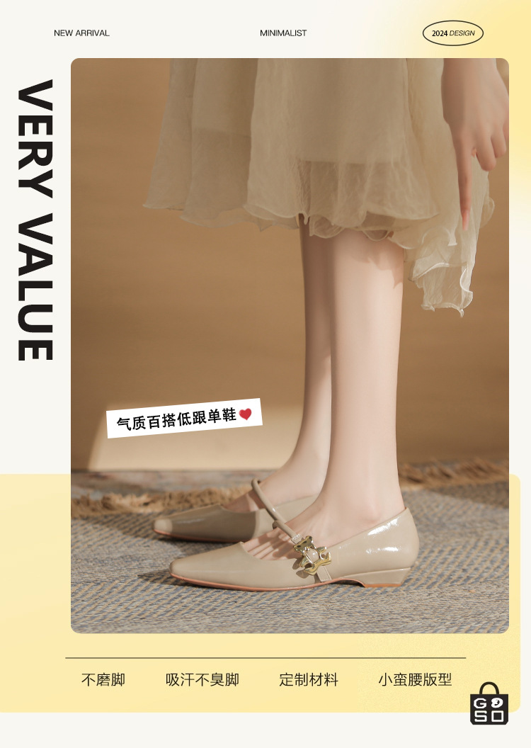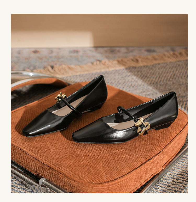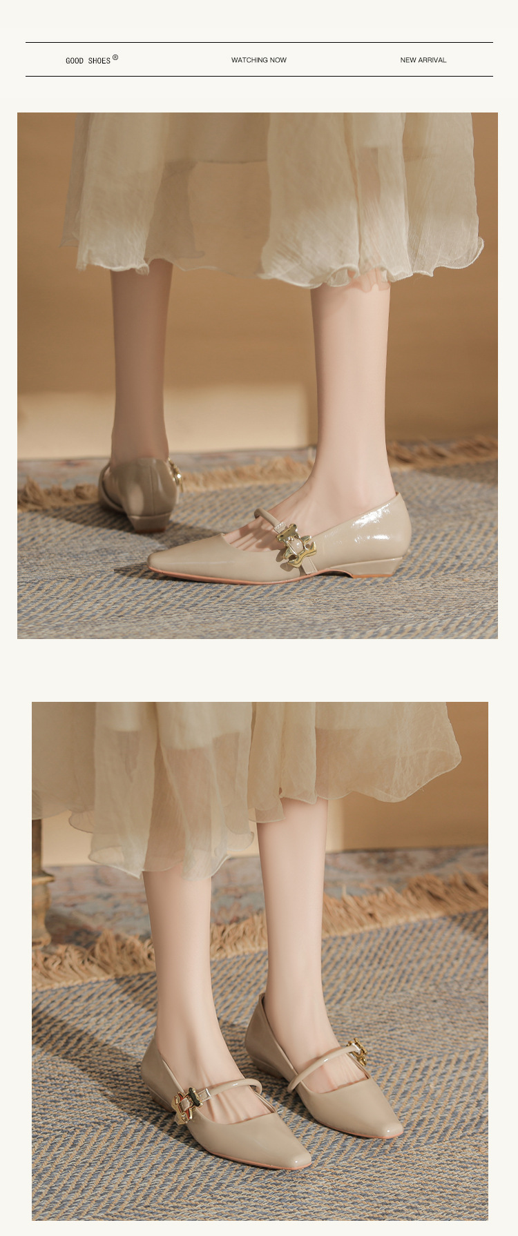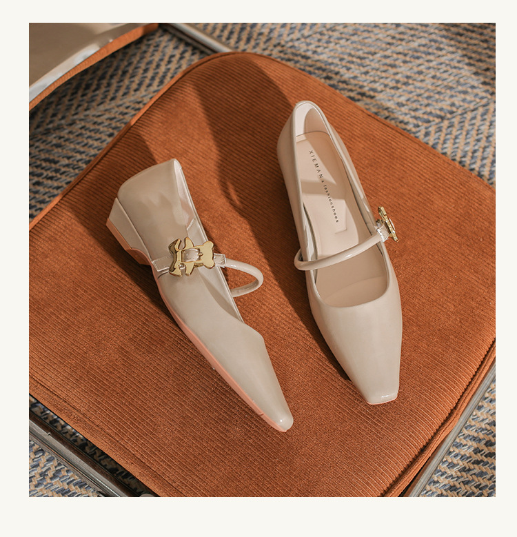 [펑통] 2208 멋진 소녀 메탈 베어 싱글 레이어 신발 부드러운 가죽 부드러운 바닥 피로하지 않은 외국 스타일의 플랫 슈즈스토어 가기