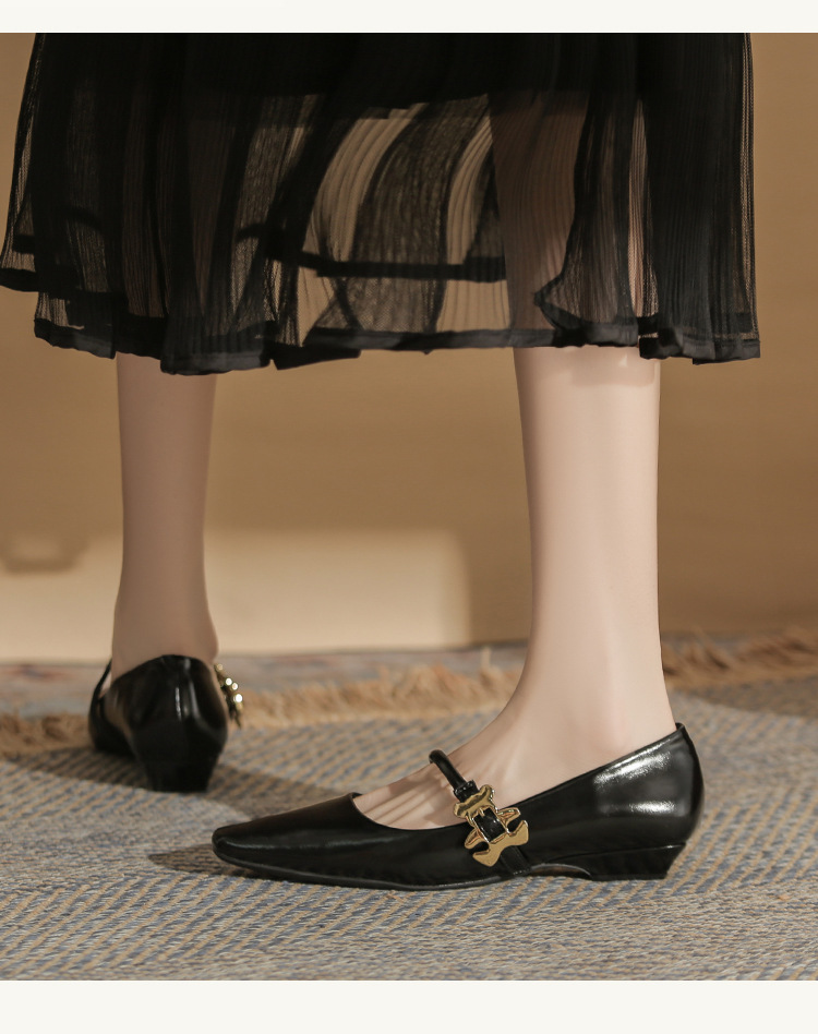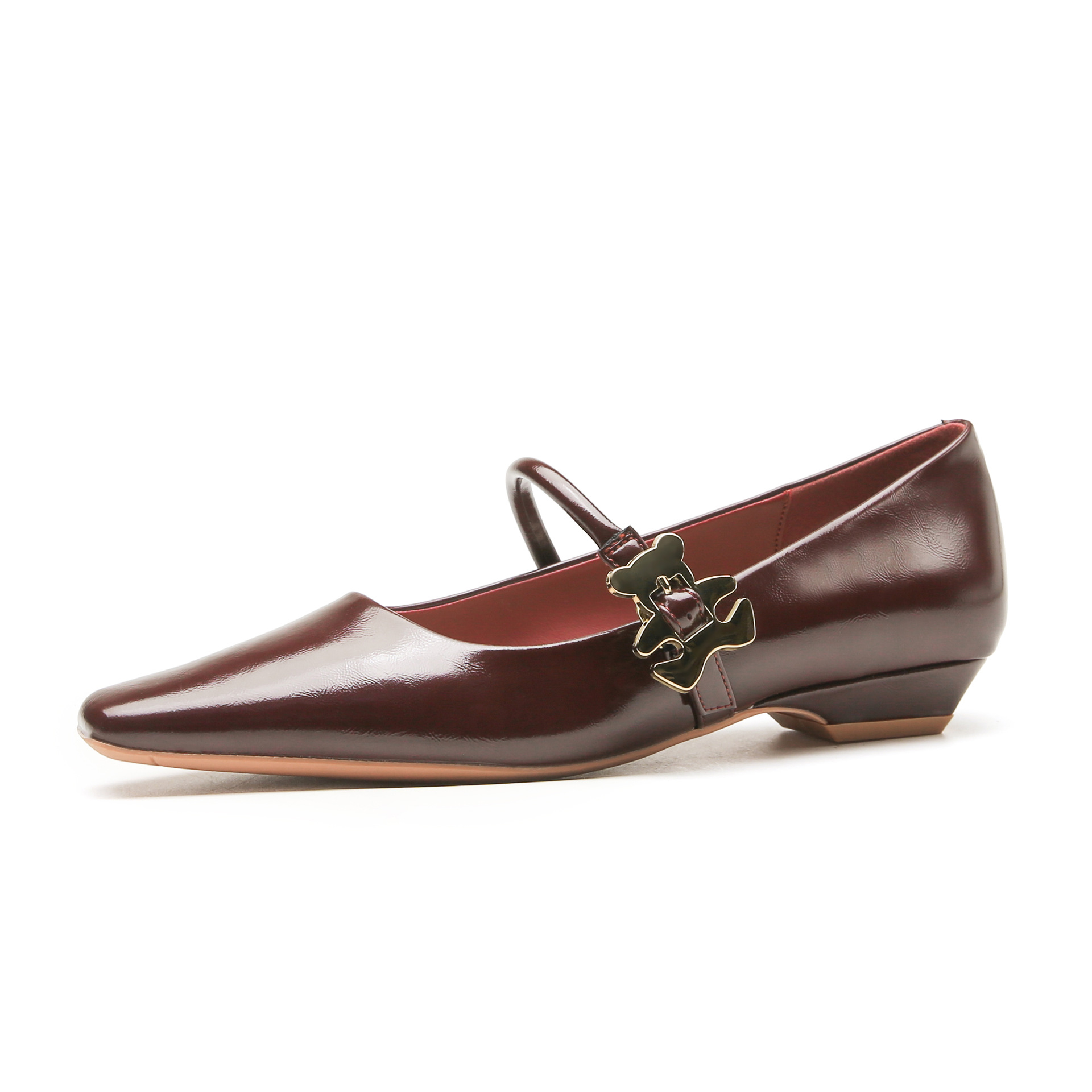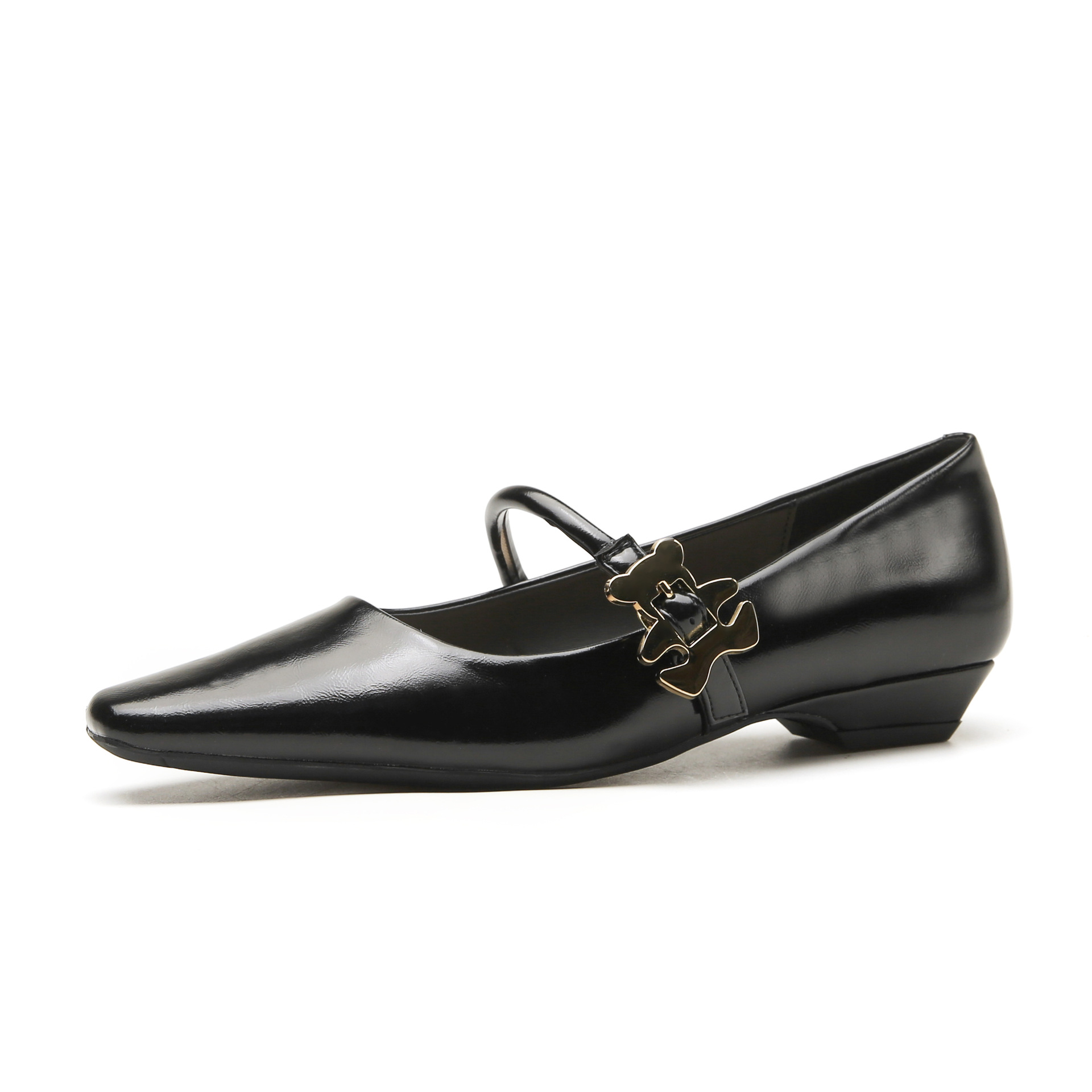 [펑통] 2208 멋진 소녀 메탈 베어 싱글 레이어 신발 부드러운 가죽 부드러운 바닥 피로하지 않은 외국 스타일의 플랫 슈즈