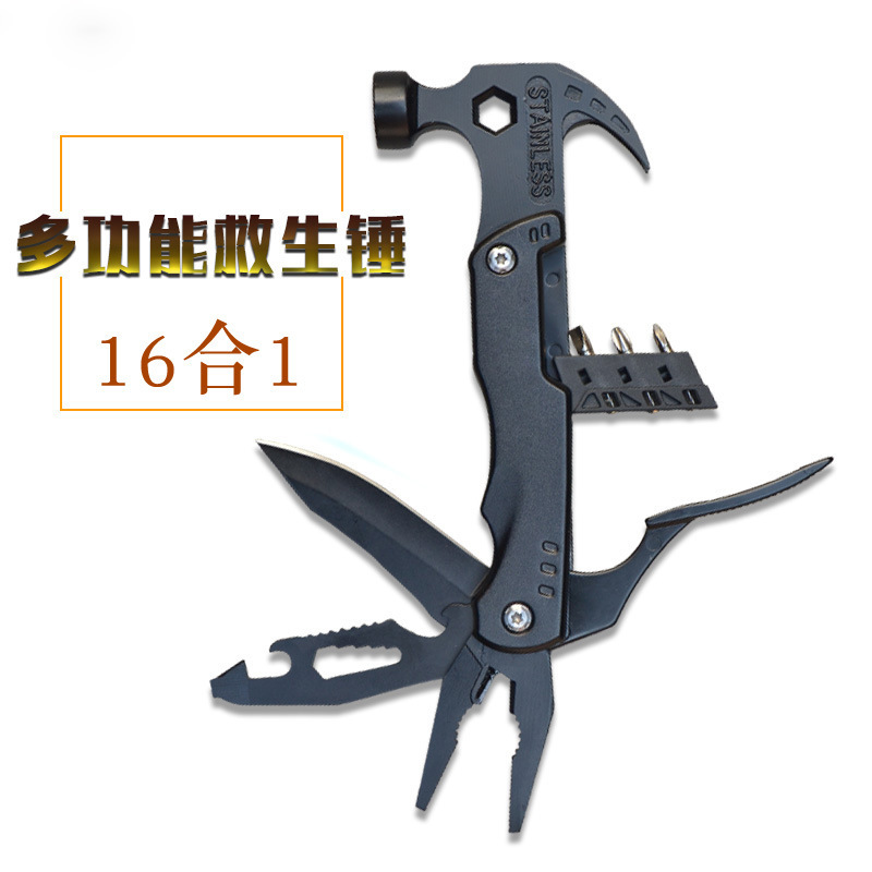 功能:1.批头安装孔 2.锤子 3.六角扳手 4.起钉器 5.主刀 6.开瓶器 7.牙刀 8.一字批 9.开罐器 10.内六角扳手(4/5/6/7/8mm)11.尖嘴钳 12.螺母钳 13.剪线钳 14.钳柄 15.批头装夹(SL4.5一字批、PH2十字批、PH1十字批)
