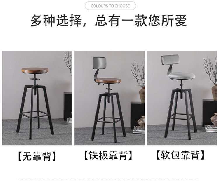 북유럽 스타일 아이언 바 의자 산업 스타일 회전 바 의자 가구 리프팅 바 의자 단단한 나무 높은 의자 등받이 의자스토어 가기