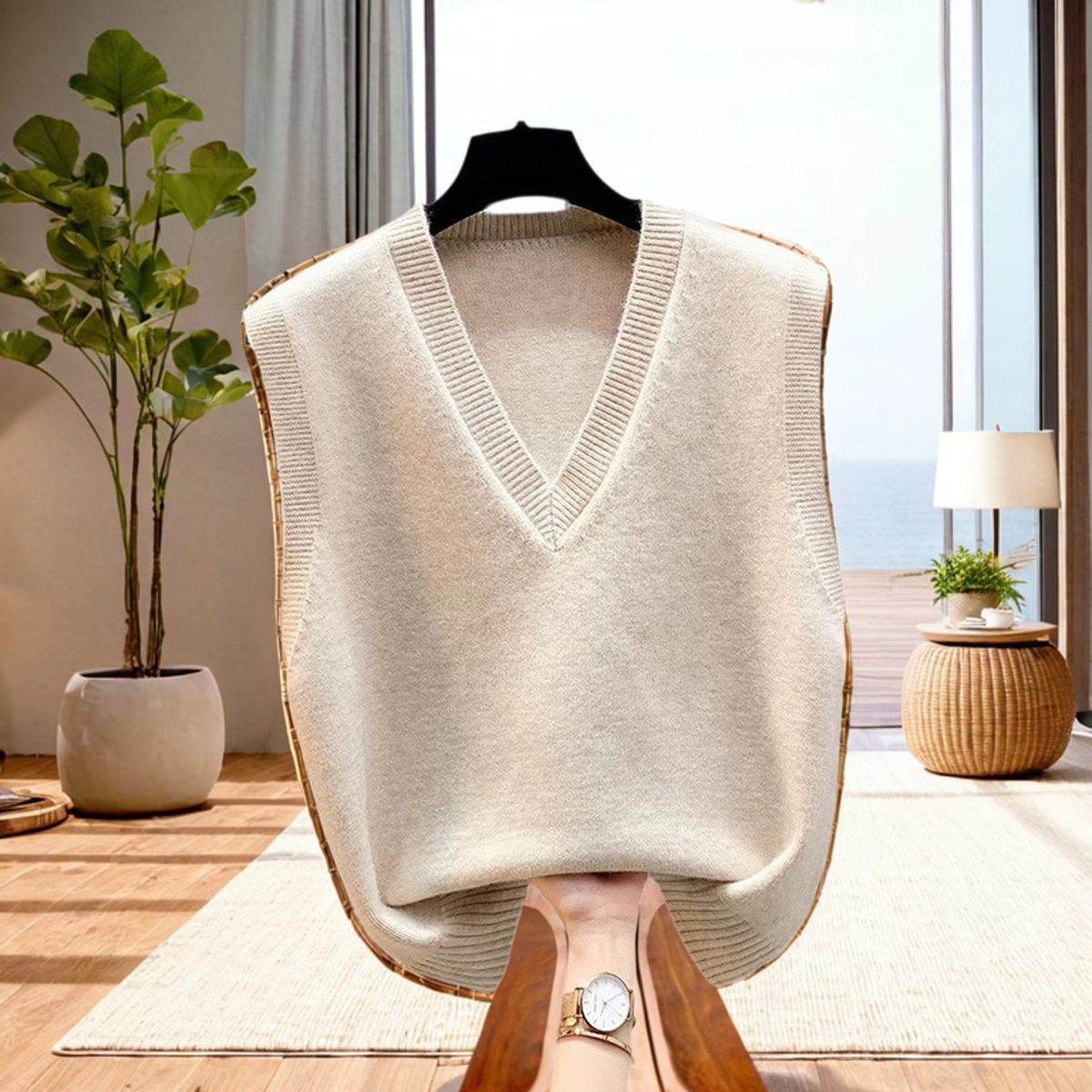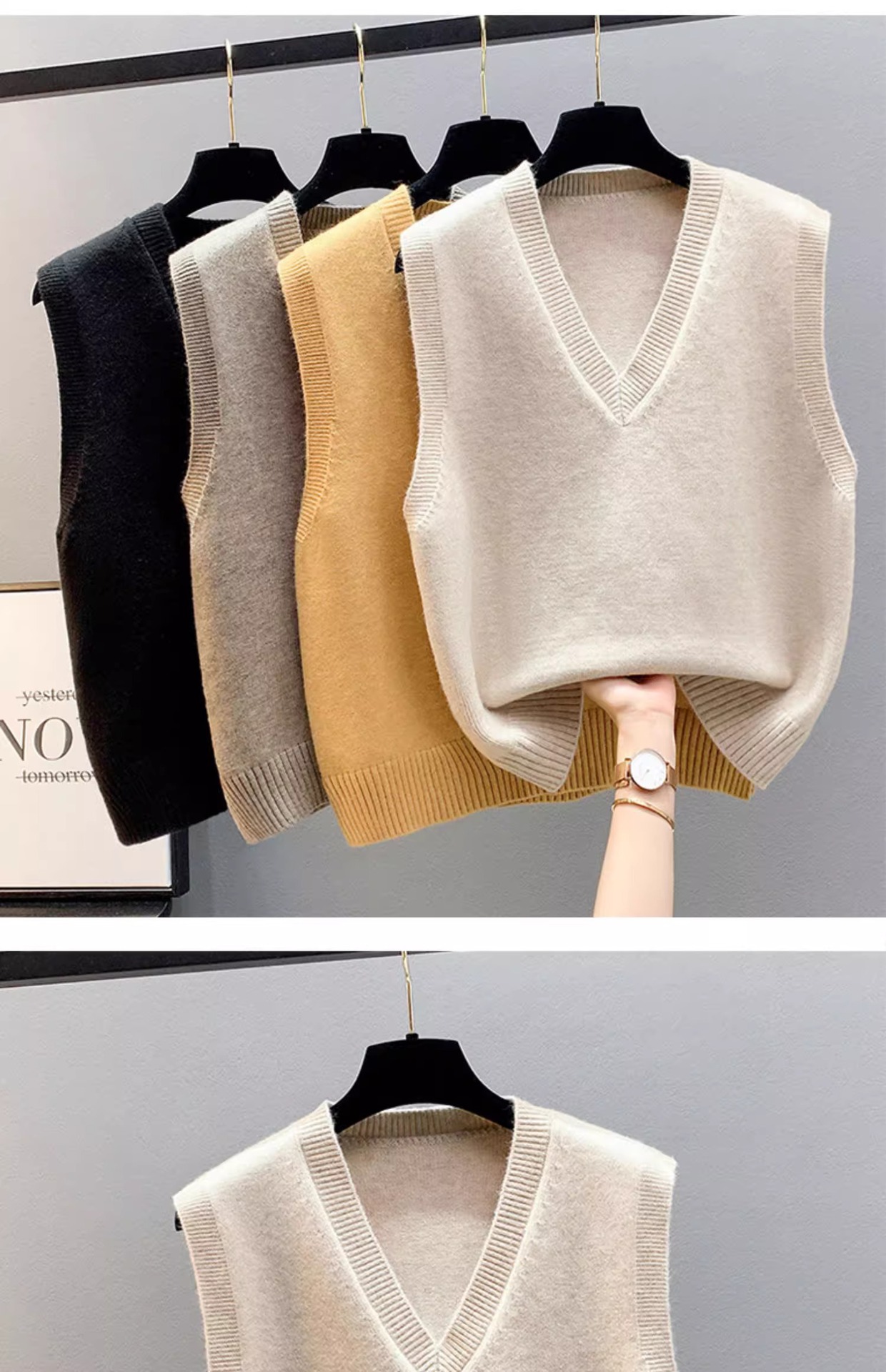 조끼 조끼 코트 가을과 겨울 웨이스트 코트 2024 새로운 솔리드 컬러 니트 여성용 스웨터 느슨한 겨울 조끼 외부 착용스토어 가기