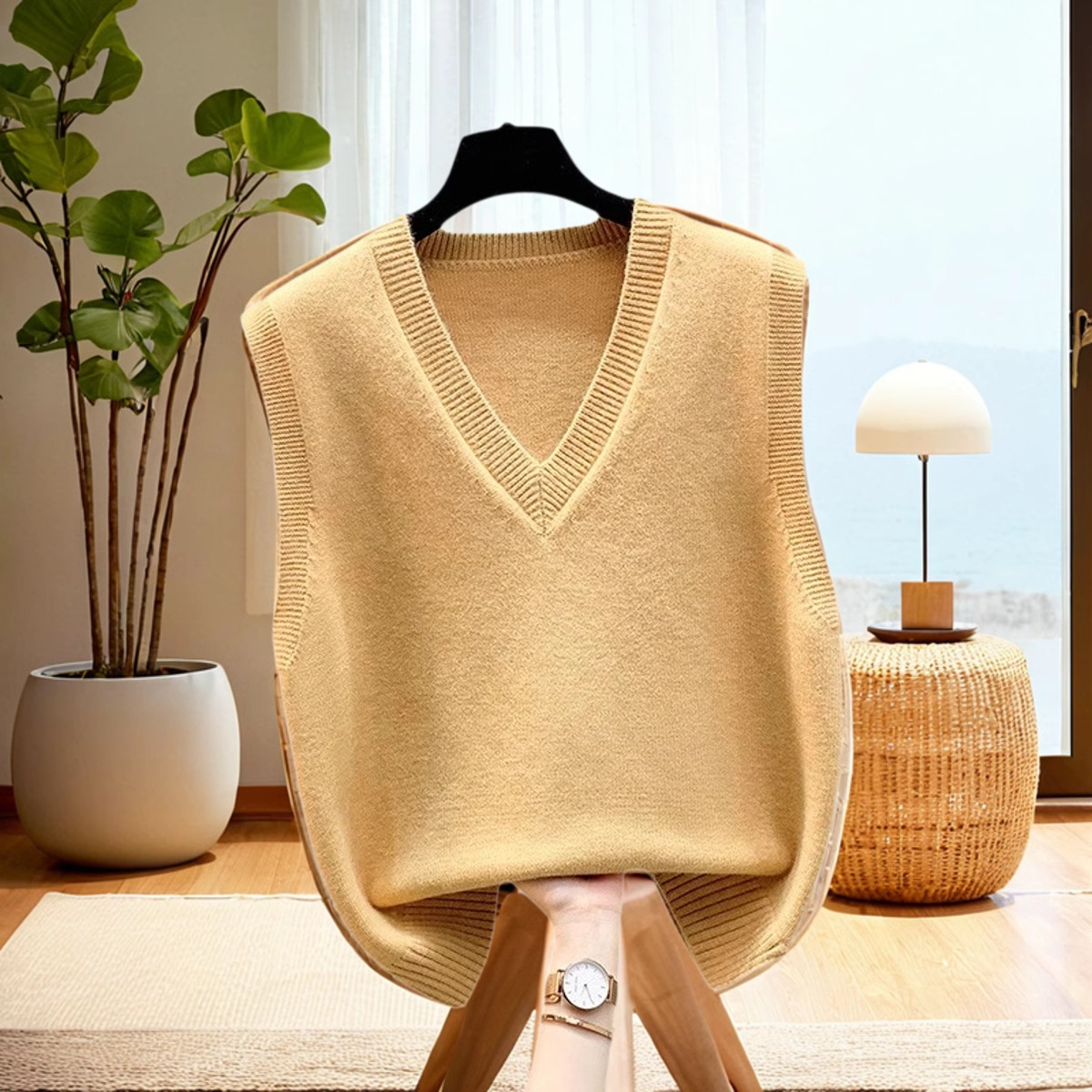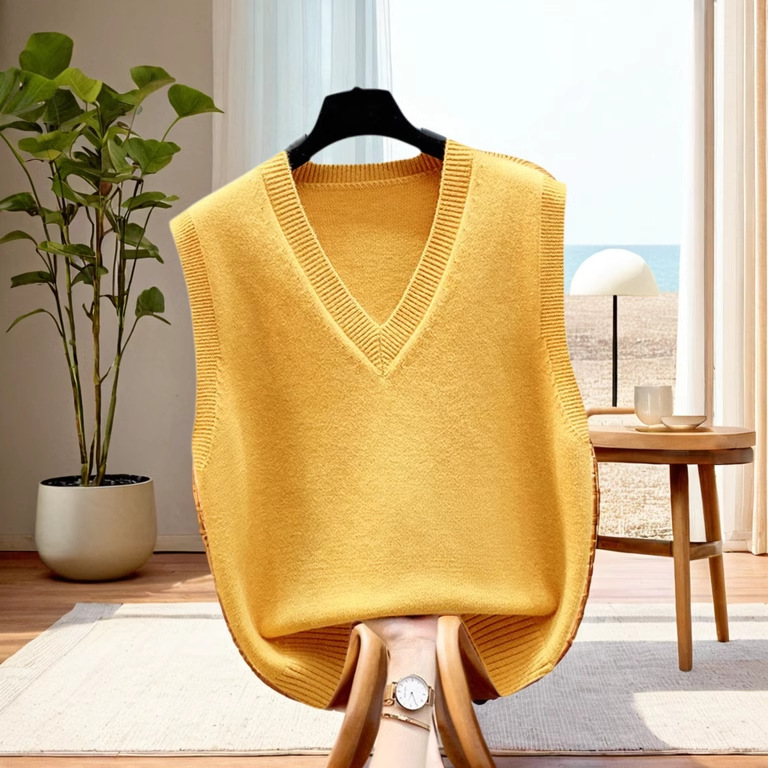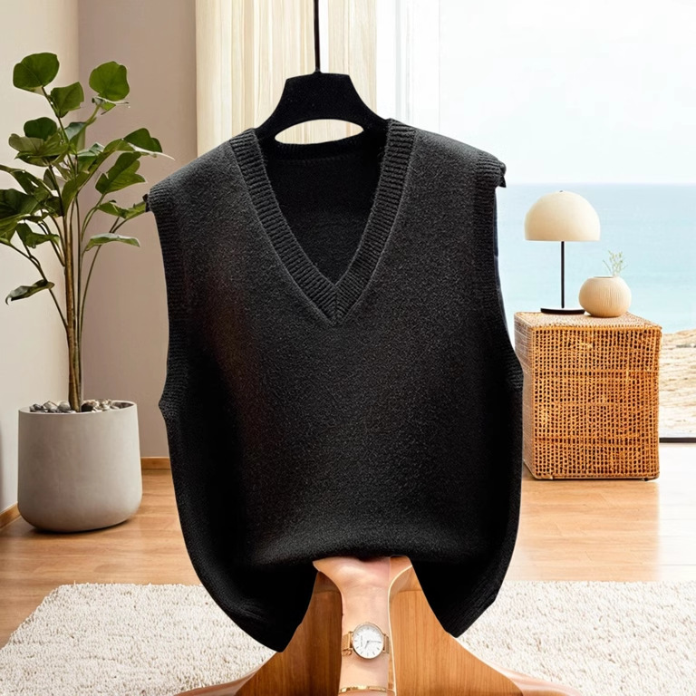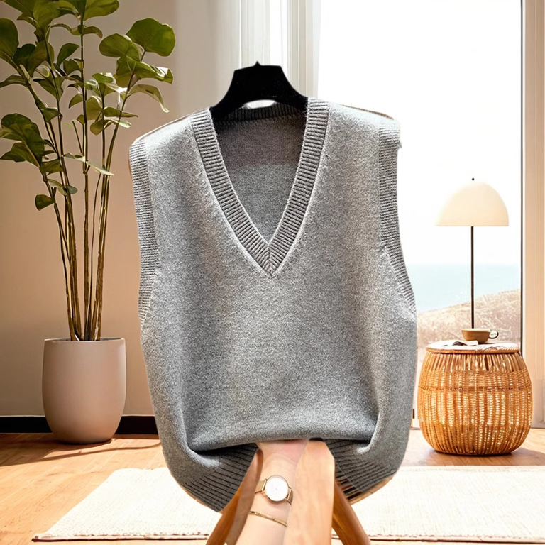 조끼 조끼 코트 가을과 겨울 웨이스트 코트 2024 새로운 솔리드 컬러 니트 여성용 스웨터 느슨한 겨울 조끼 외부 착용