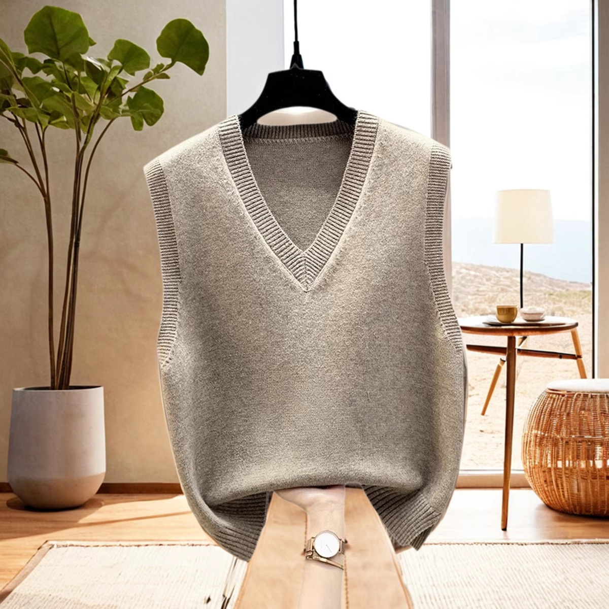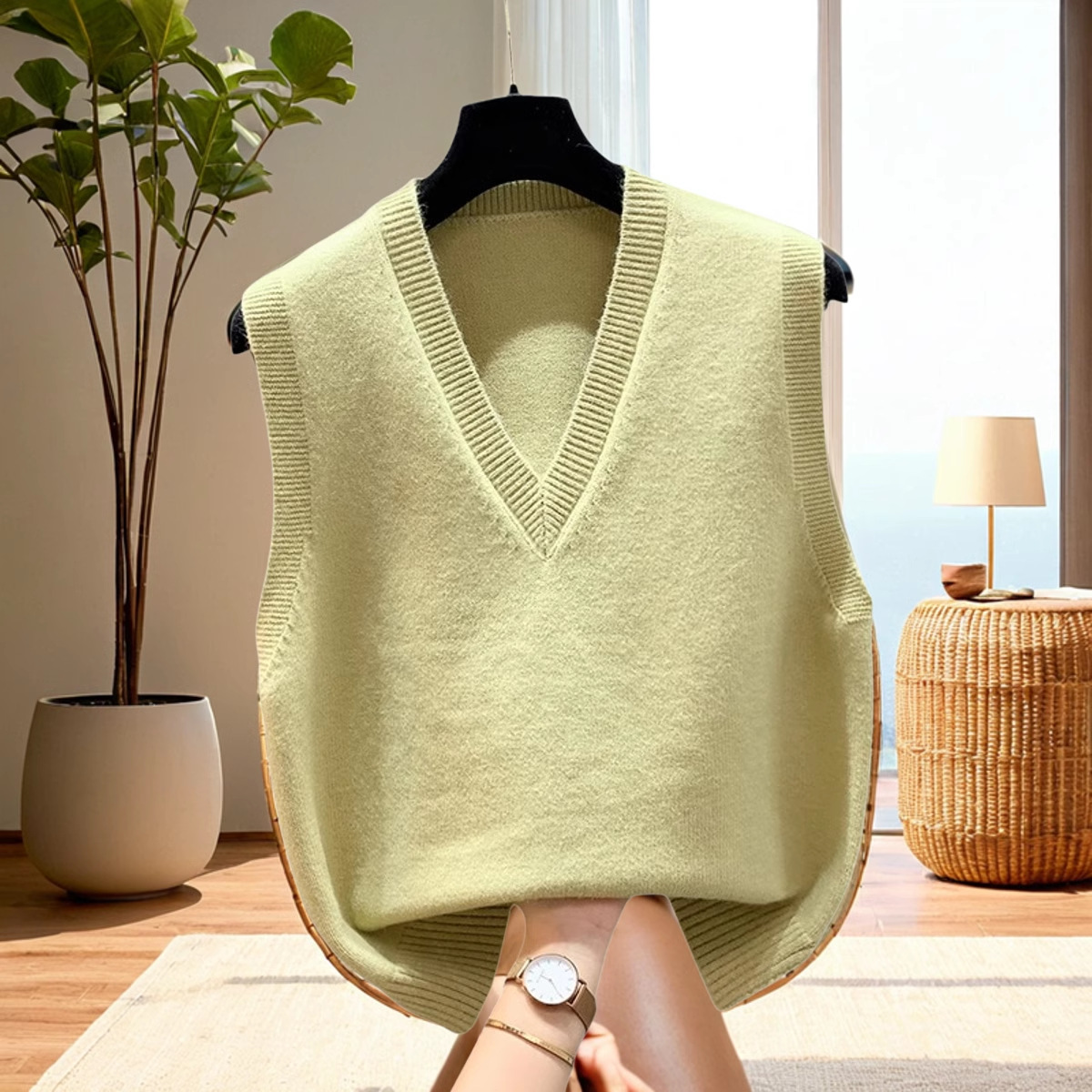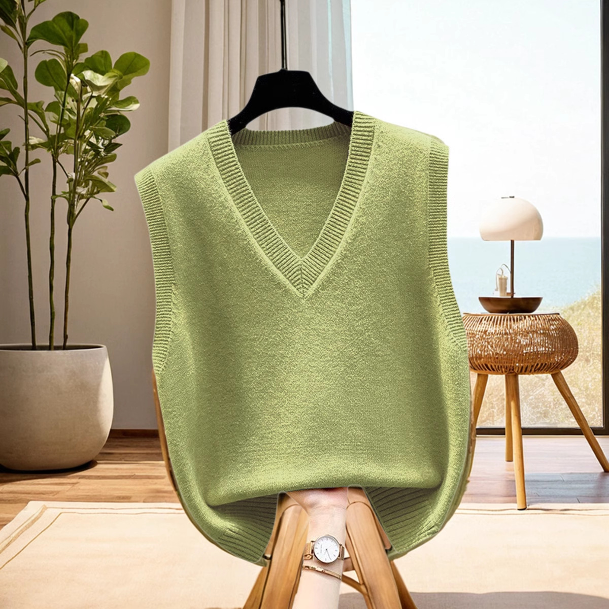 조끼 조끼 코트 가을과 겨울 웨이스트 코트 2024 새로운 솔리드 컬러 니트 여성용 스웨터 느슨한 겨울 조끼 외부 착용