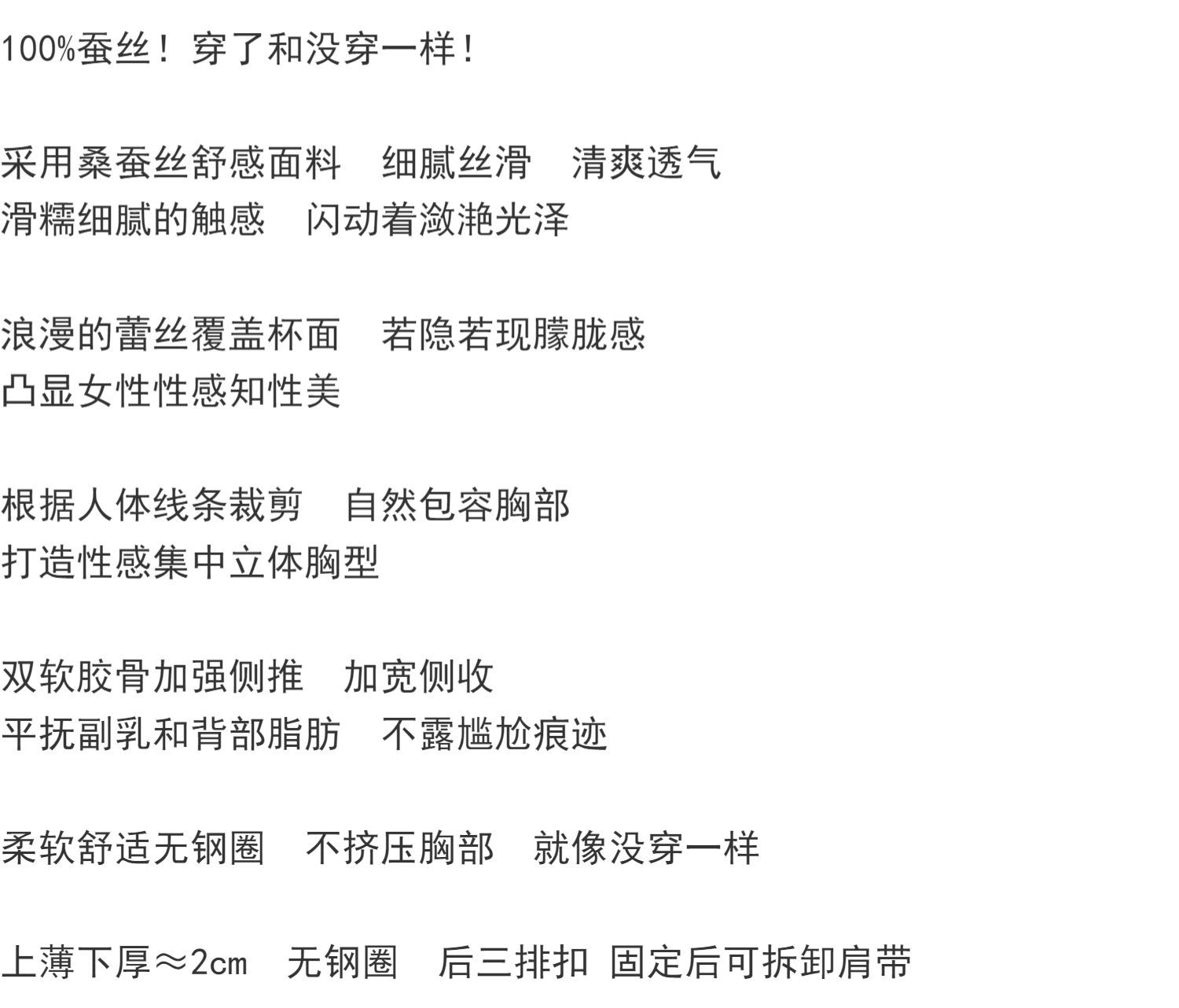 100% 뽕나무 실크 작은 가슴 수집 대형 노컷 속옷 여성 파라마리 처짐 방지 조정 가능한 스틸 브라