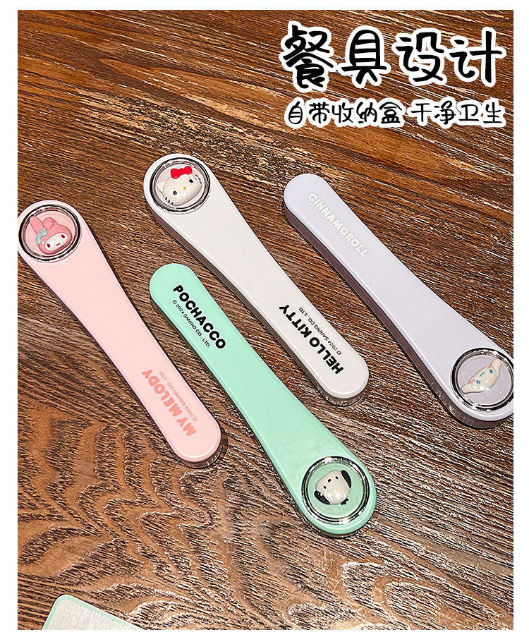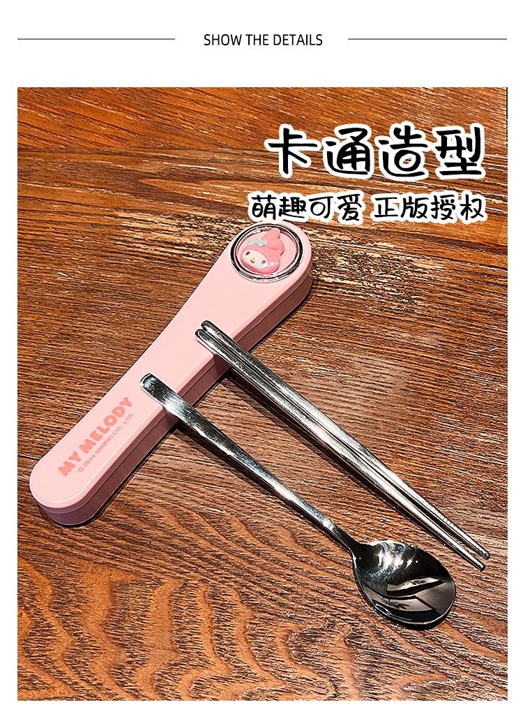 새로운 산리오 스테인레스 스틸 휴대용 식기 높은 색상 가치 야외 창조적 인 만화 귀여운 젓가락 숟가락 3 피스 세트