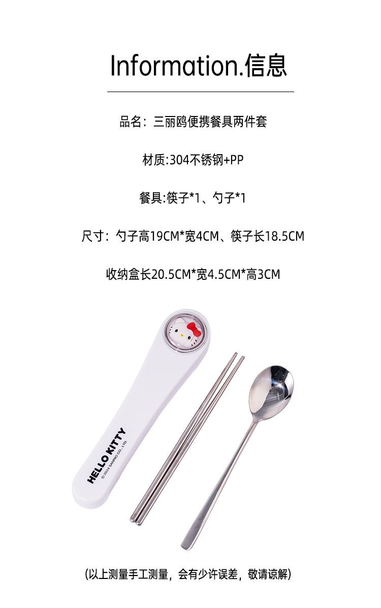 새로운 산리오 스테인레스 스틸 휴대용 식기 높은 색상 가치 야외 창조적 인 만화 귀여운 젓가락 숟가락 3 피스 세트스토어 가기