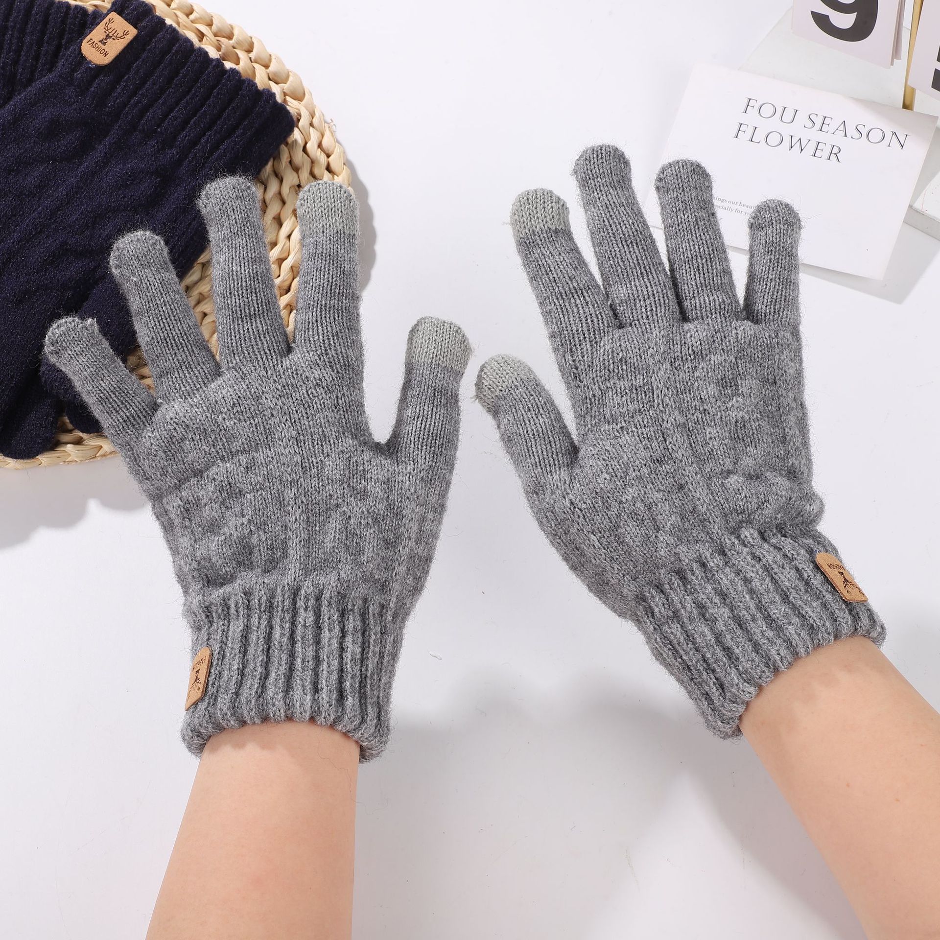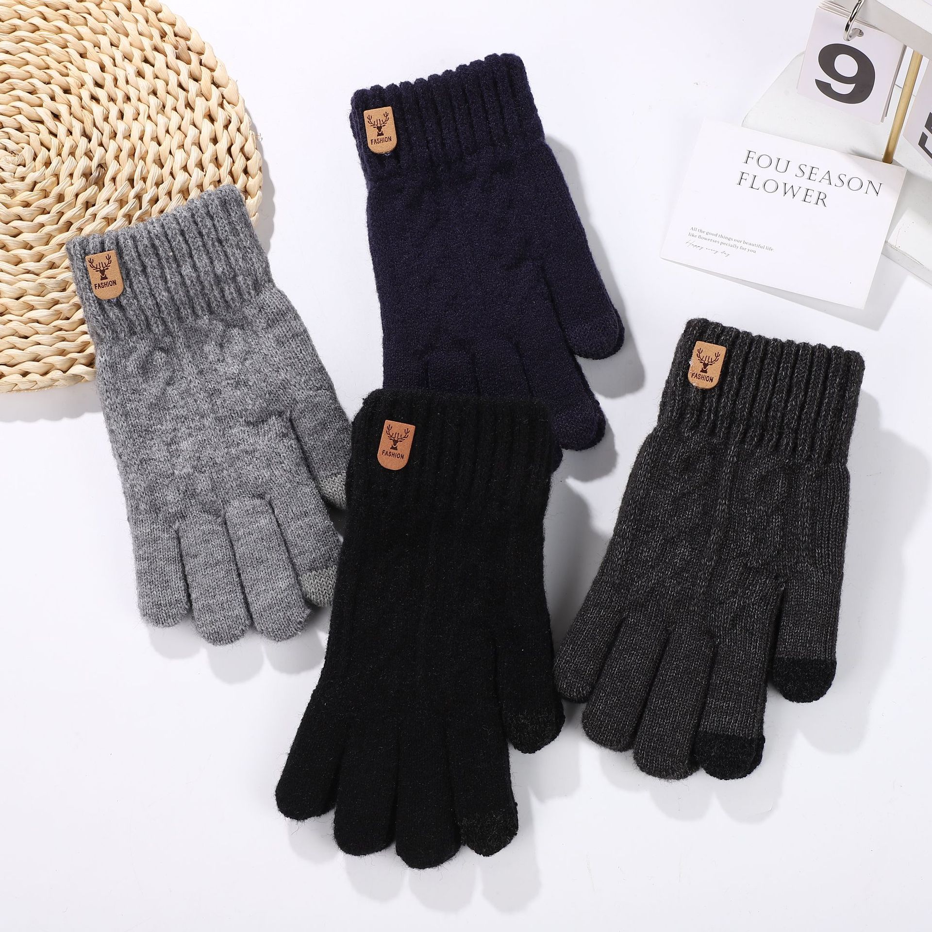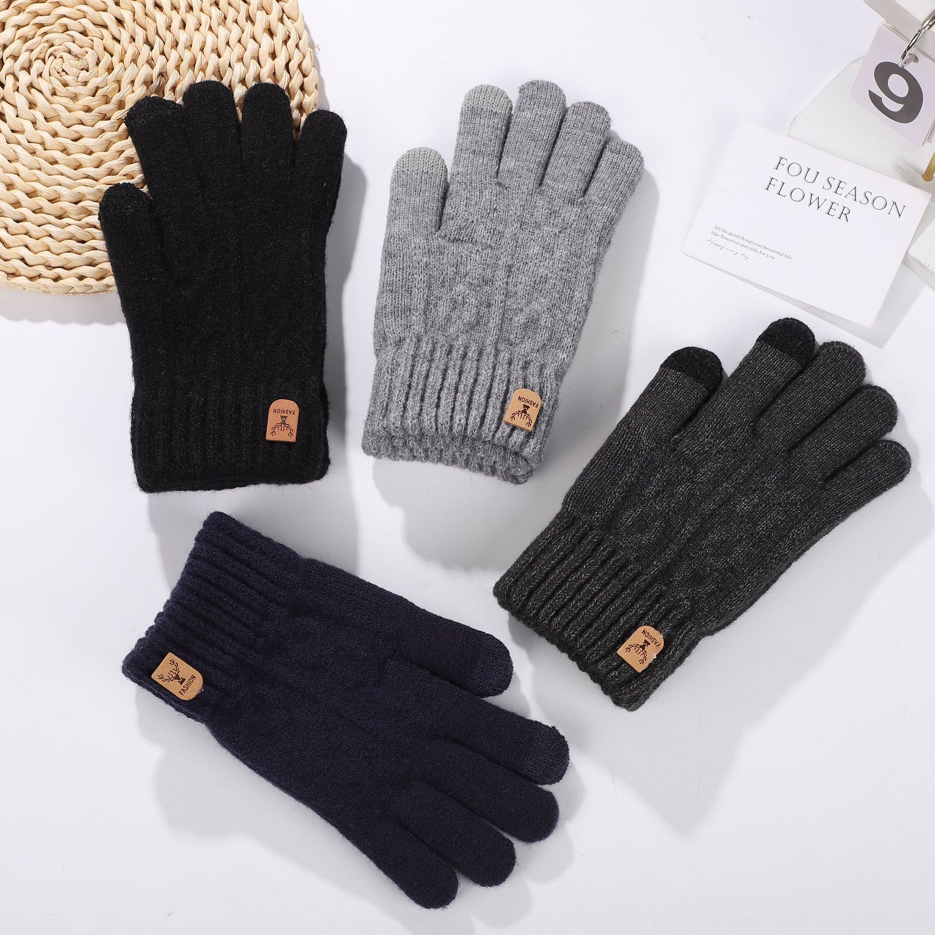 가을과 겨울 편안한 패션 캐주얼 남성 야외 두꺼운 솔질 한국 스타일 간단한 따뜻한 감기 방지 터치 스크린 니트 장갑