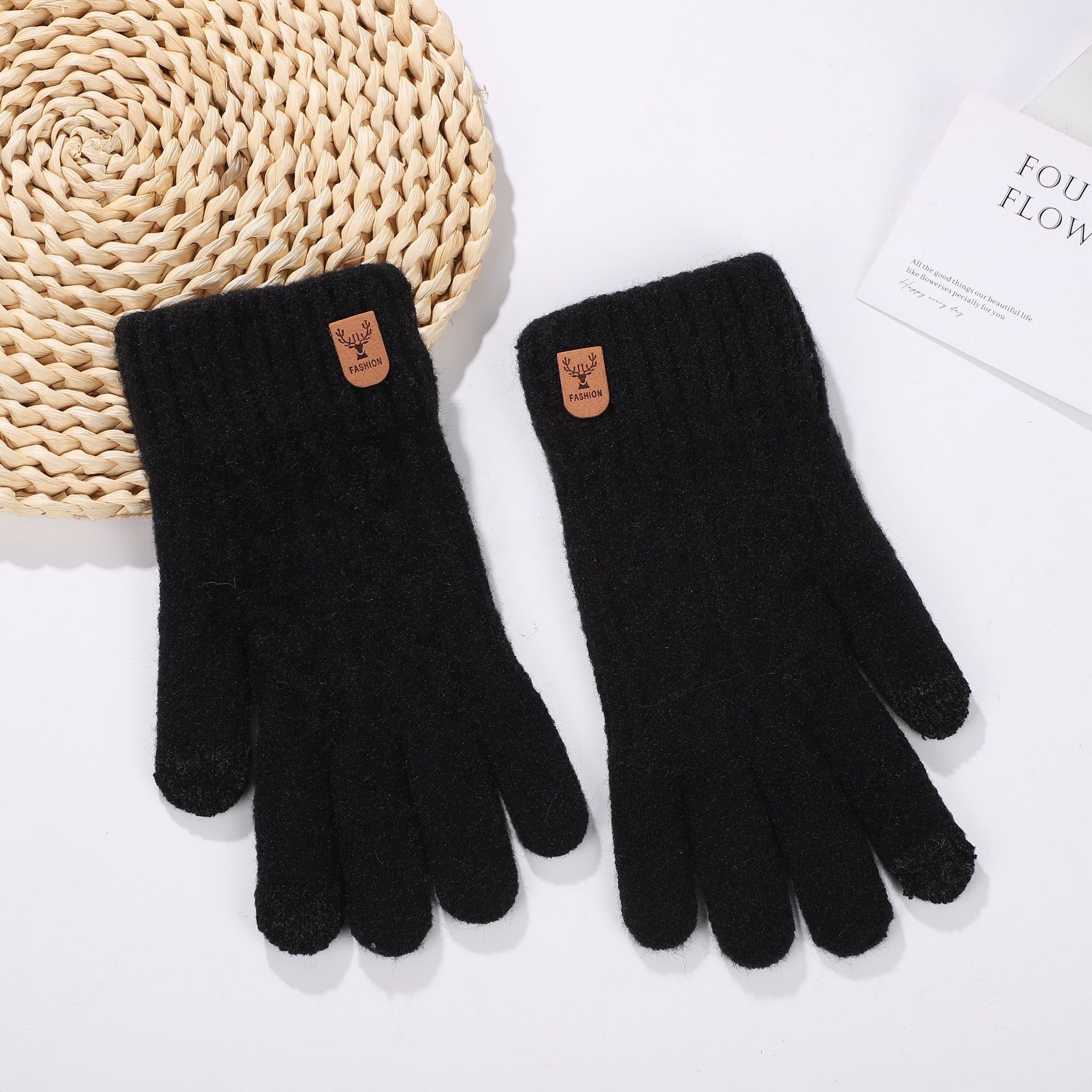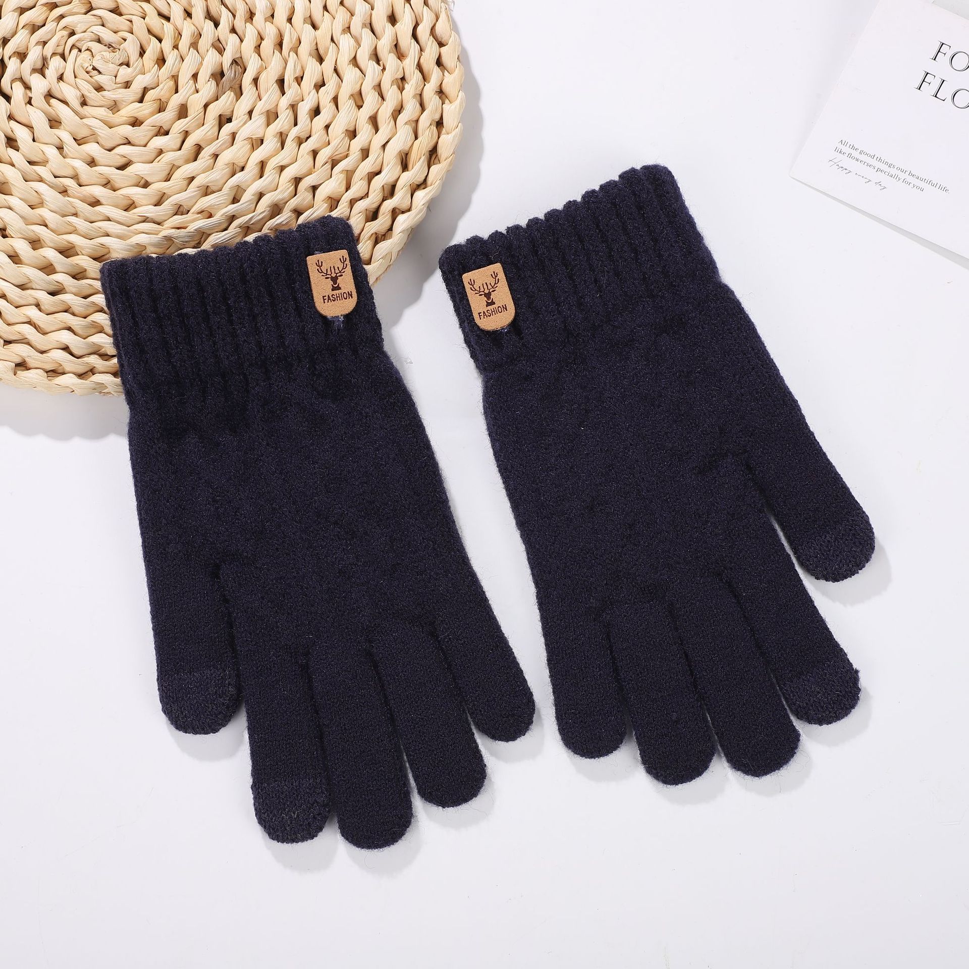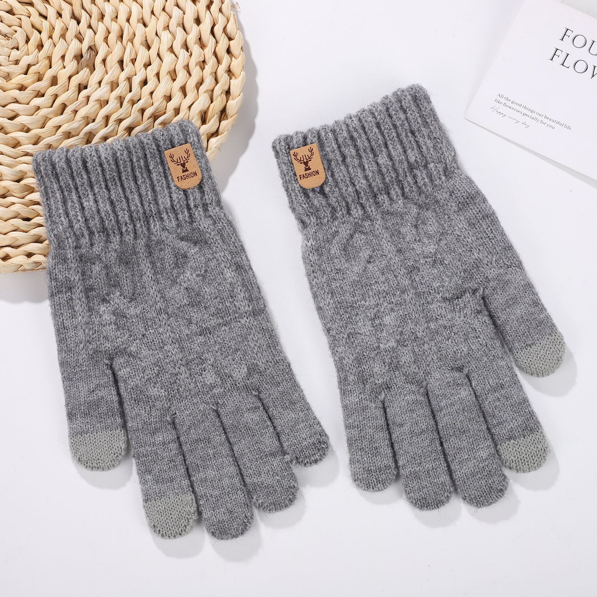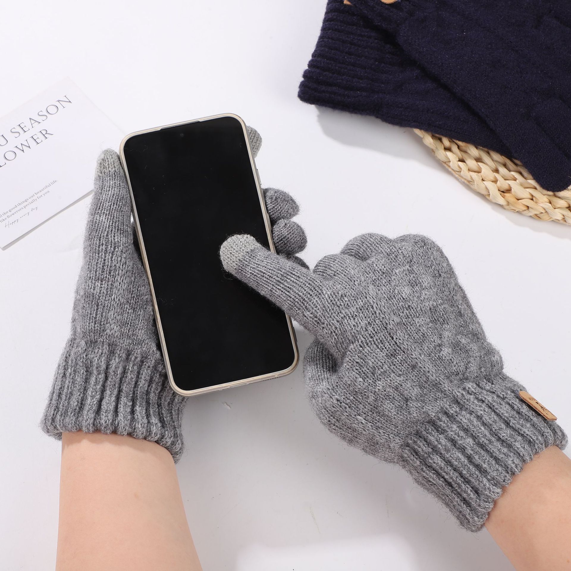 가을과 겨울 편안한 패션 캐주얼 남성 야외 두꺼운 솔질 한국 스타일 간단한 따뜻한 감기 방지 터치 스크린 니트 장갑