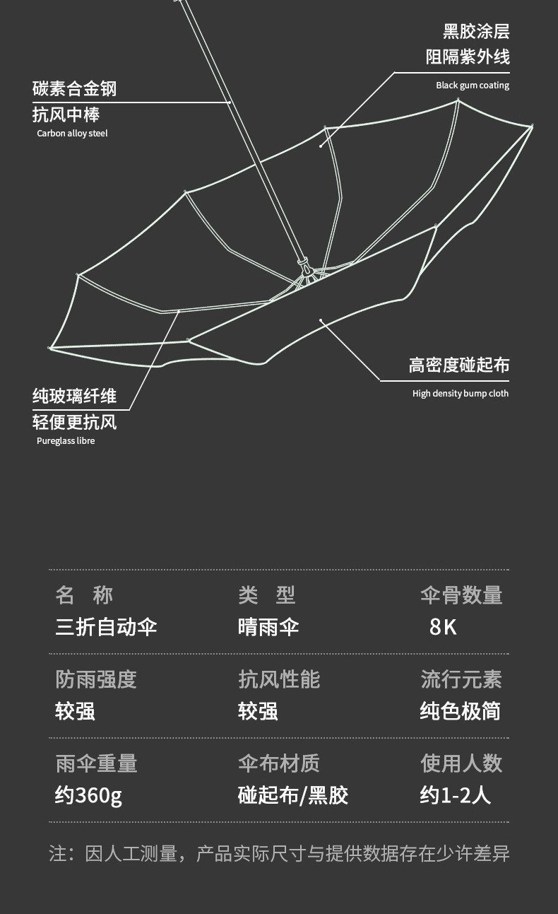 창조적 인 버클 자동 우산 잠금 간단한 일본 선 스크린 햇빛과 비 이중 사용 사업 자동 3 배 우산 도매스토어 가기