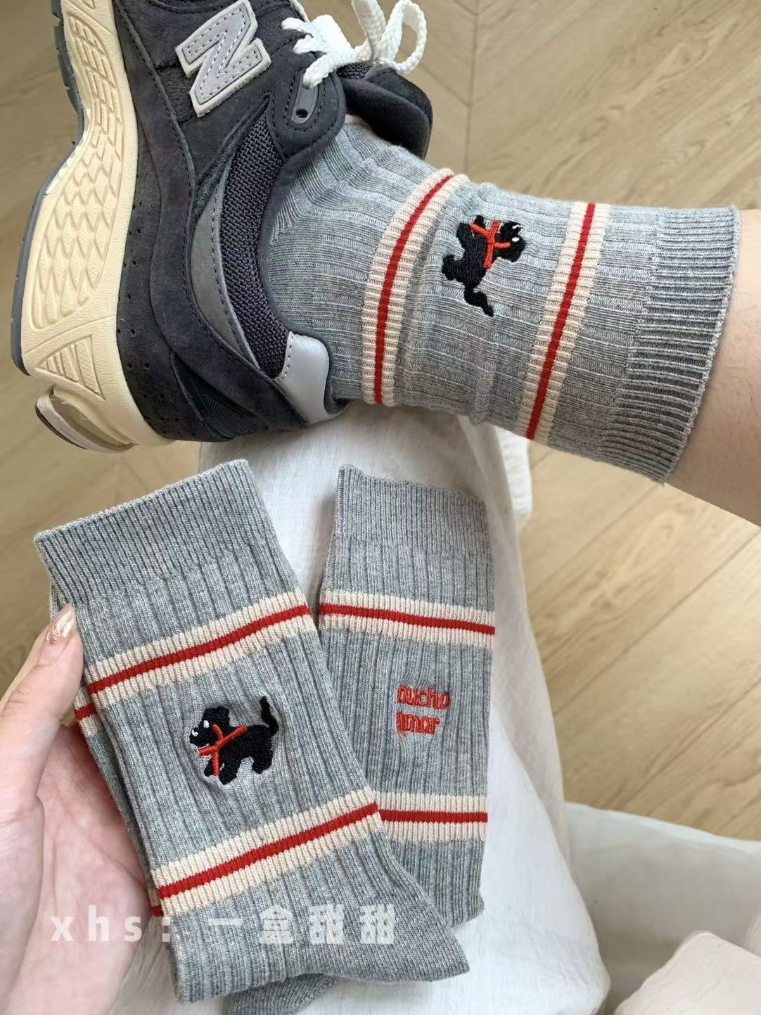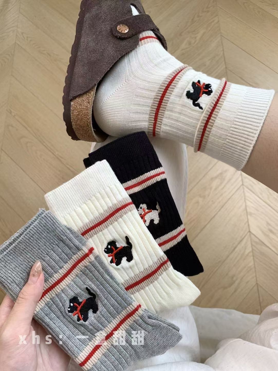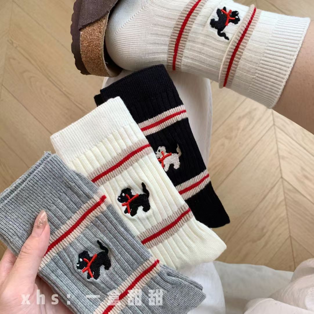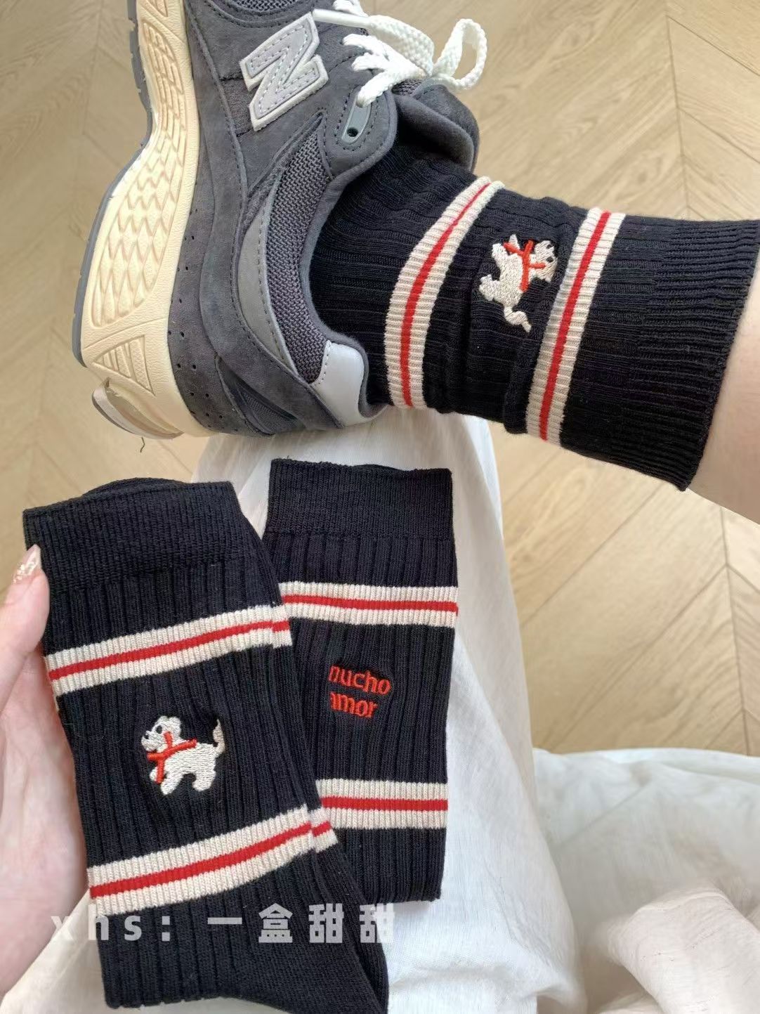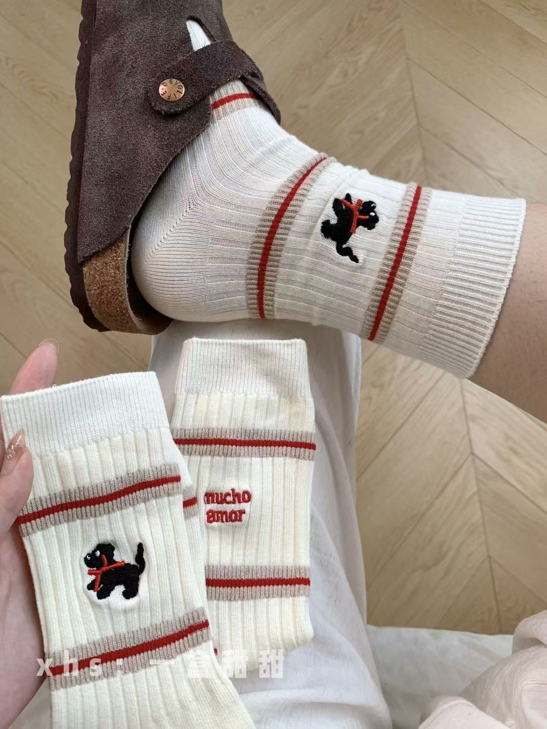 가을과 겨울 한다이 동대문 인즈 스타일 달콤한 귀여운 대학 스타일 줄무늬 강아지 미드 튜브 양말 어린이 더미