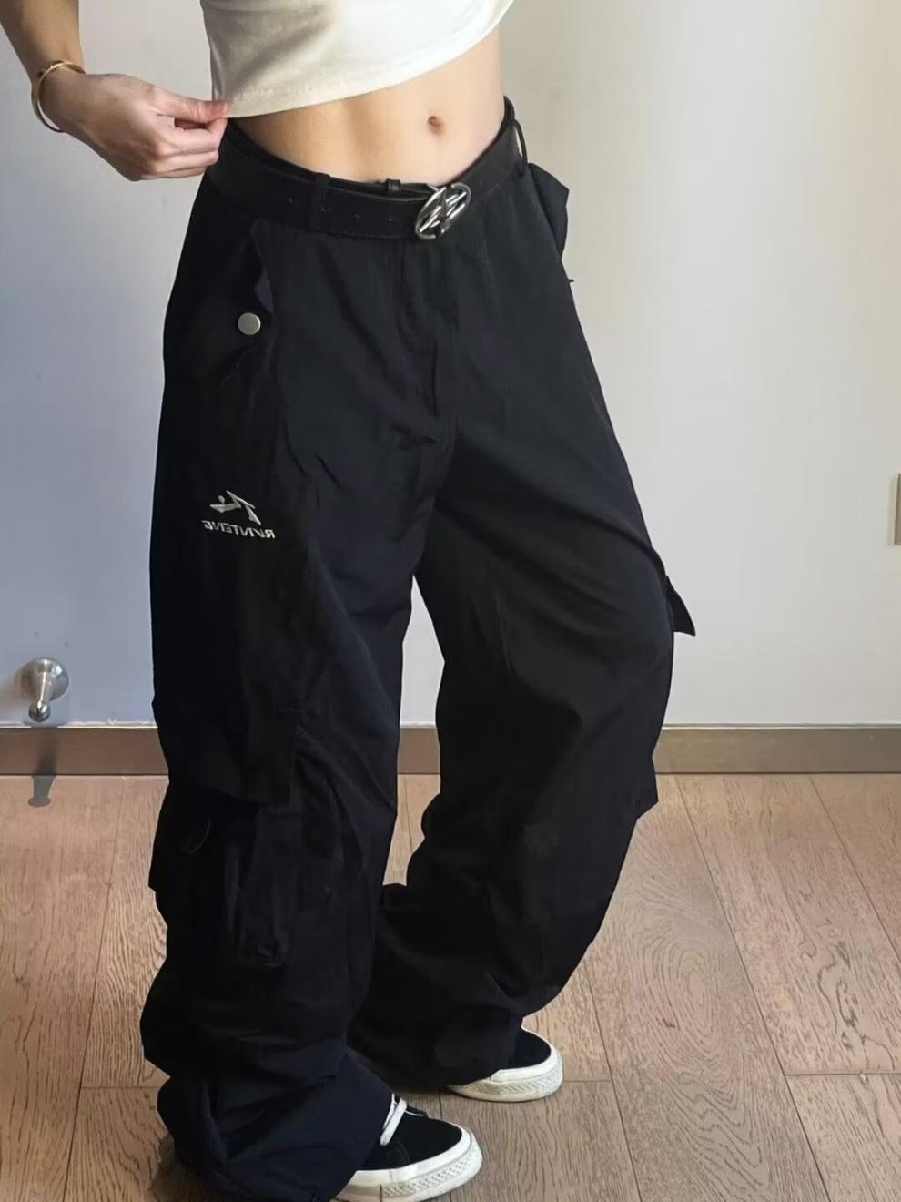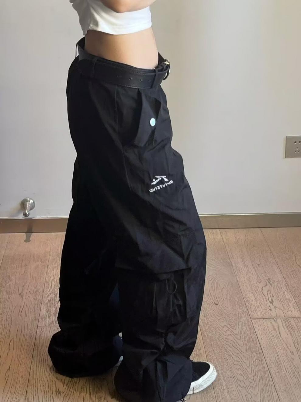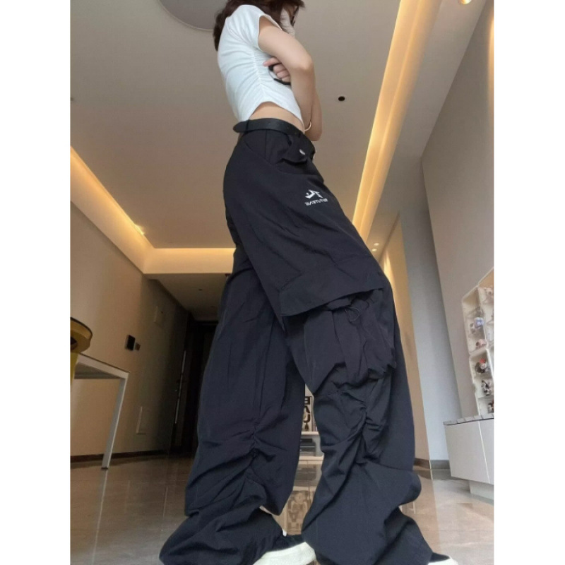 여름 얇은 미국 스타일 느슨한 히팝 바지 오프 화이트 빠른 건조 낙하산 병, 여성을위한 캐주얼 스포츠 작업복 충전스토어 가기