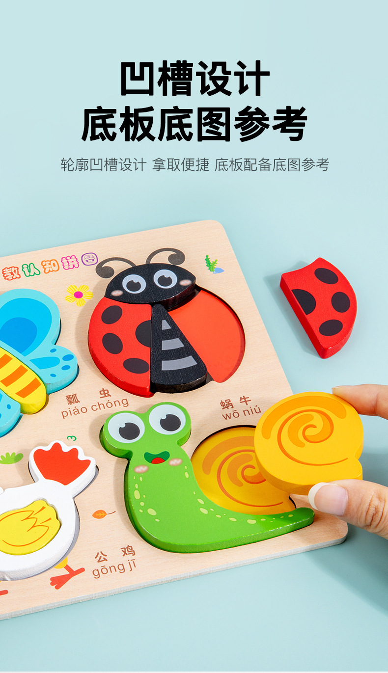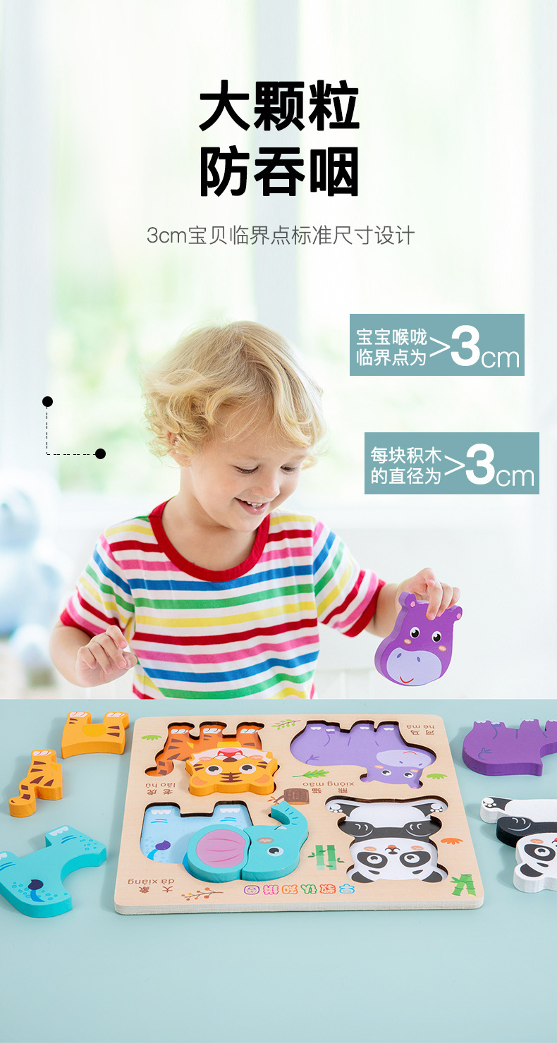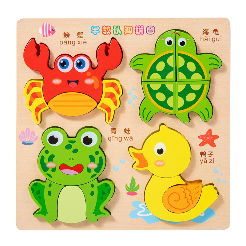 나무 입체 4-in-1 퍼즐 몬테소리 조기 교육 퍼즐 어린이 3 세 조기 교육 동물 교통인지 교육 장난감스토어 가기