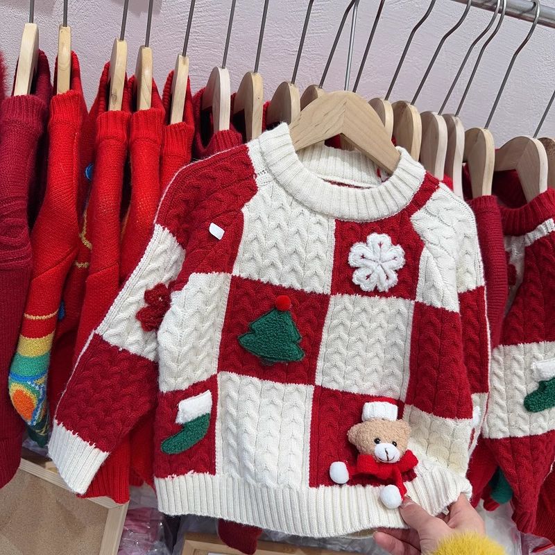 린 린 마 레드 스웨터 신년 2024 겨울 크리스마스 만화 니트웨어 따뜻한 베이스 탑 트렌디스토어 가기