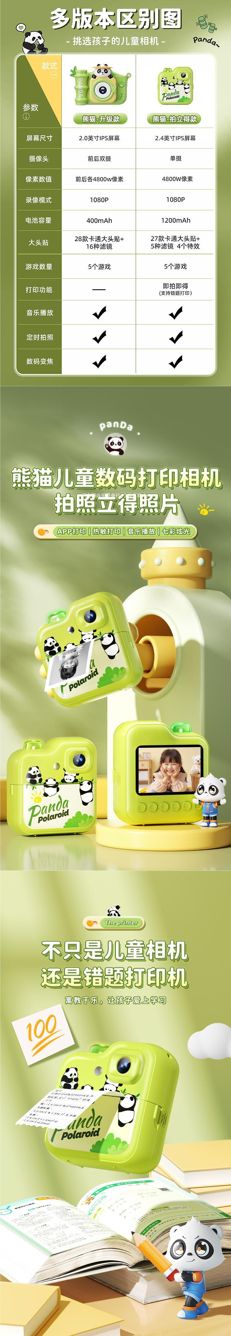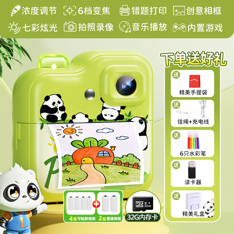 • [Panda Pro 모델⭐32G+접착식 인화지 4롤+감열지 2롤】인쇄 카메라│즉시 촬영 및 인쇄│잘못된 질문으로 인쇄됨│블루투스 사진 전송