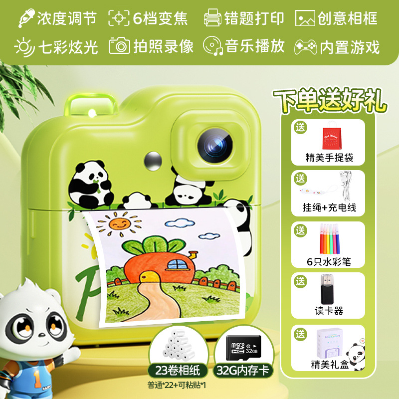 • [Panda Pro 모델⭐감열지 32G+23롤】인쇄 카메라│즉시 촬영 및 인쇄│잘못된 질문으로 인쇄됨│블루투스 사진 전송