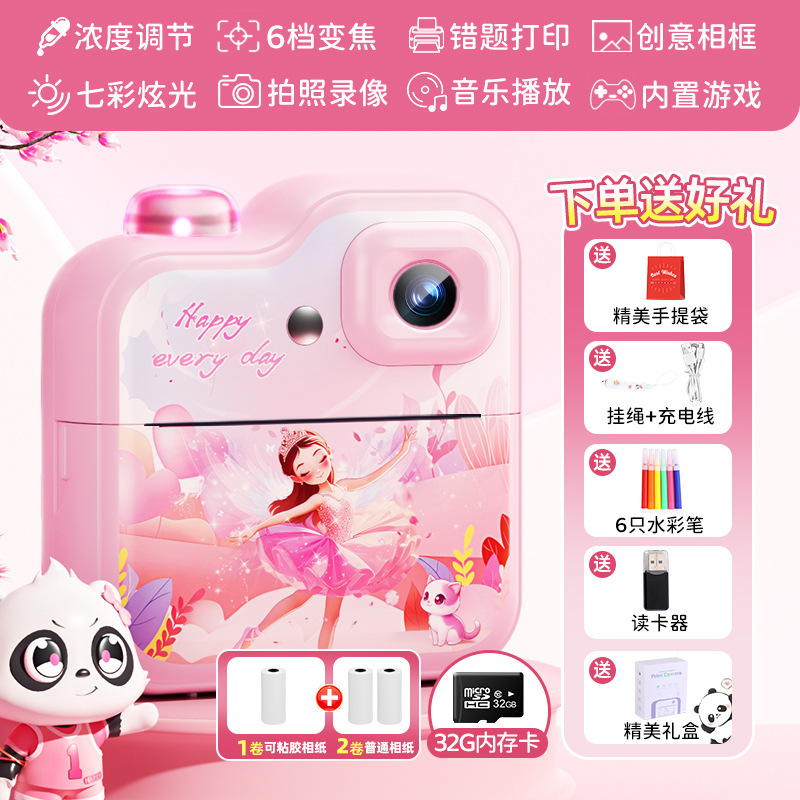 • [발레 프로 스타일⭐32G+감열지 3롤】인쇄 카메라│즉시 촬영 및 인쇄│잘못된 질문으로 인쇄됨│블루투스 사진 전송