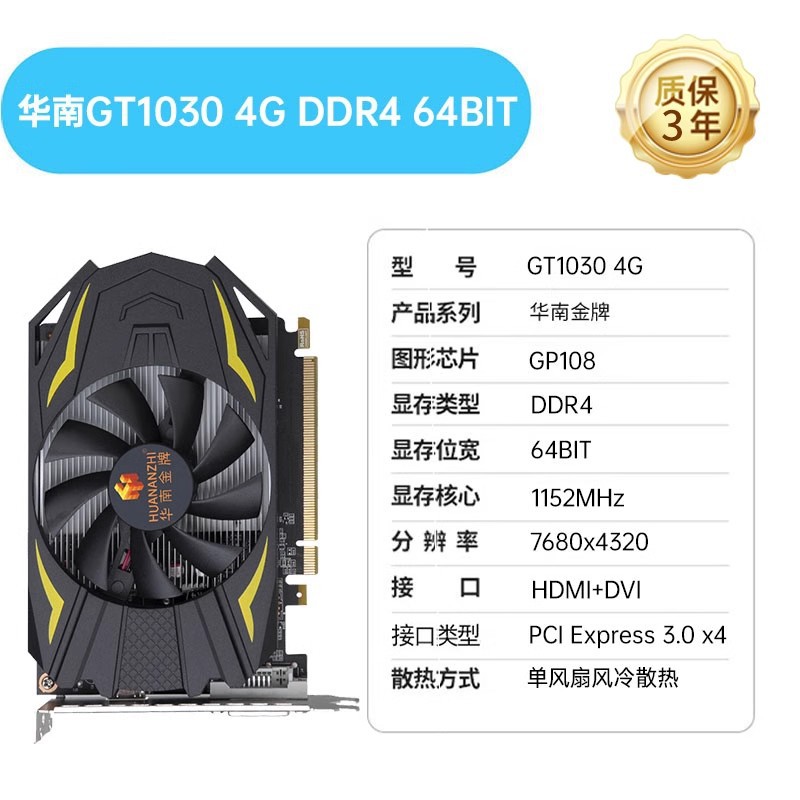 华南金牌GT730 4G 96SP DDR3 128bit 刀卡显卡