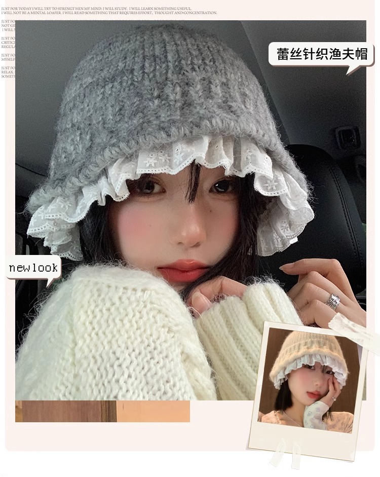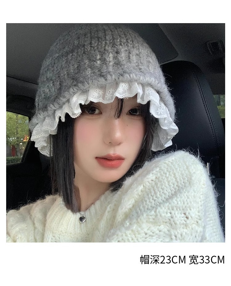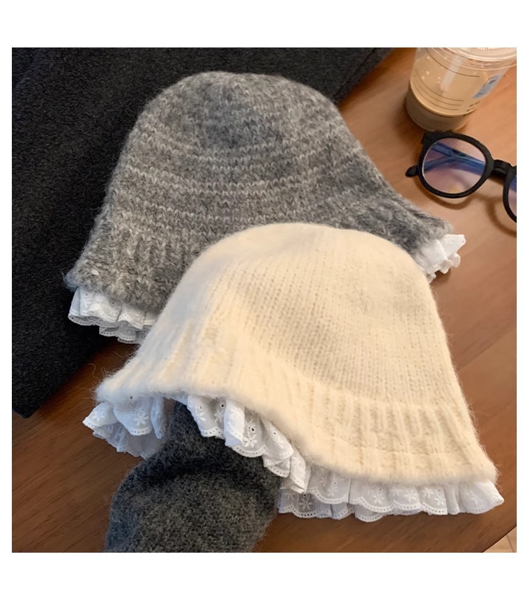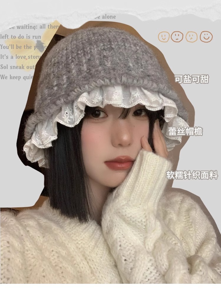 한국 레이스 니트 어부 모자 어린이 2024 가을과 겨울 따뜻한 달콤한 올 매치 얼굴 작은 양모 분지 모자스토어 가기