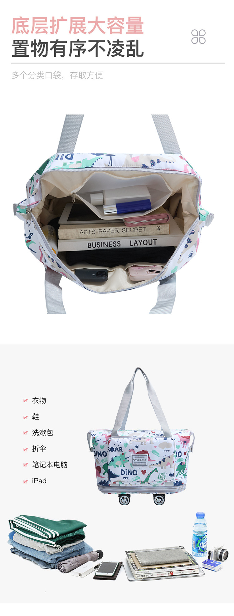 바퀴가 달린 높은 색상 가치 대용량 패션 캐주얼 다목적 내마모성 피트니스 스포츠 여행 가방 새로운 만화 휴대용스토어 가기