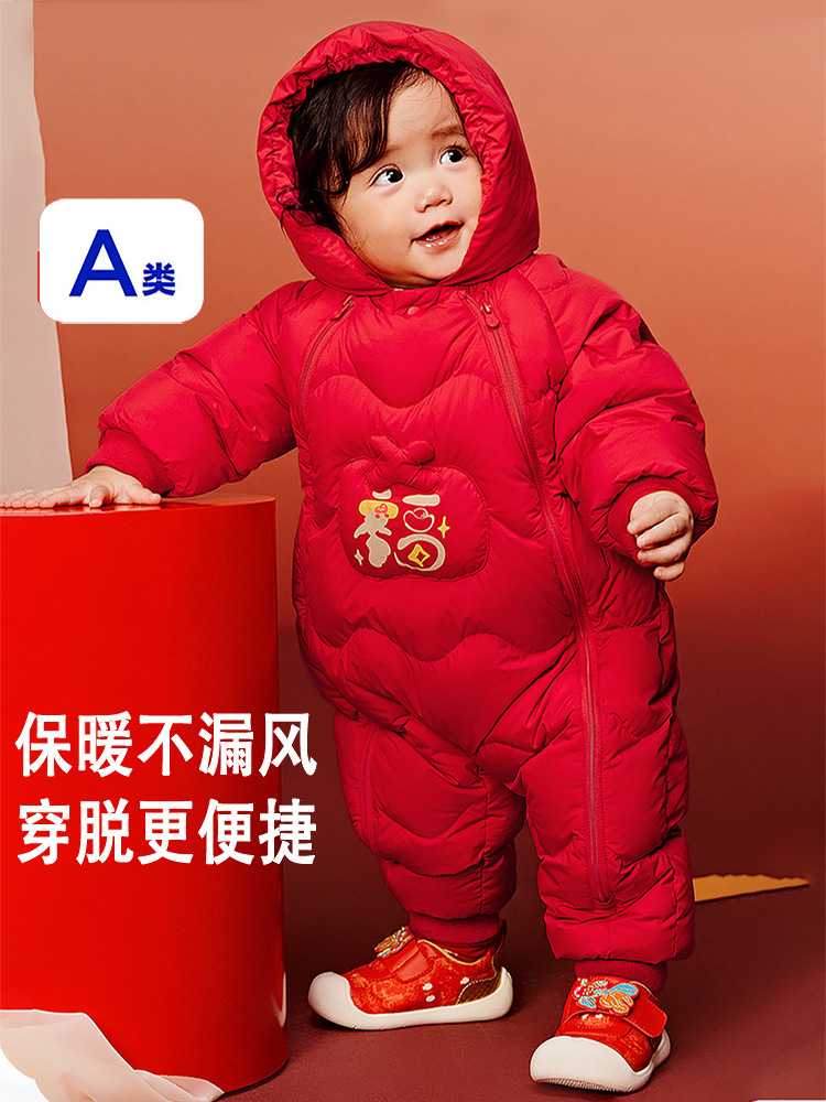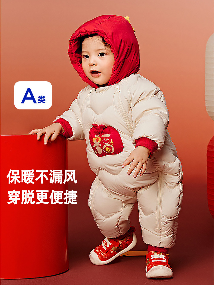 할인 아기 다운 재킷 점프 수트 겨울 아기 아웃 어린이 의류 따뜻한 기모 흰 오리 다운 저지 등반 세트스토어 가기
