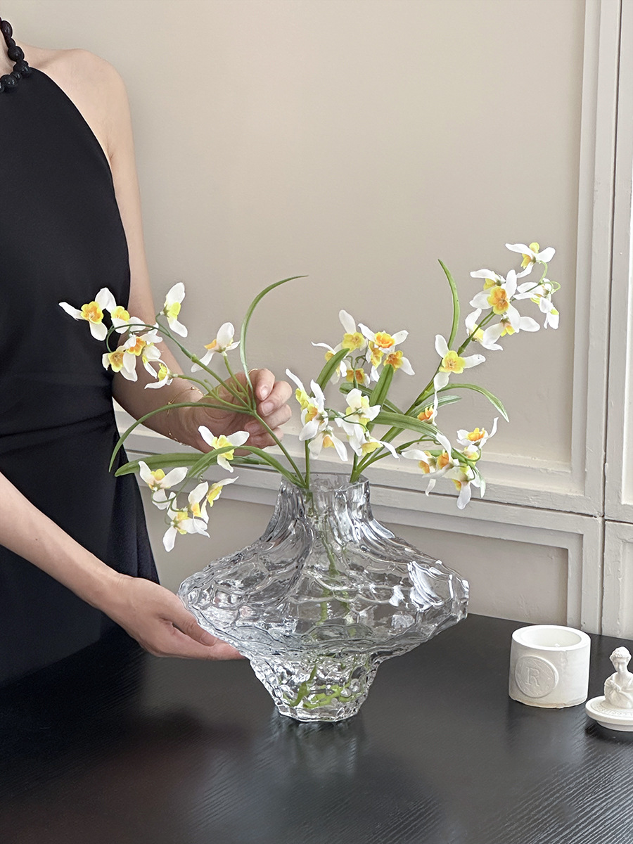 • 투명한 계곡 꽃병(대형) + 작은 흰색 난초(2다발)