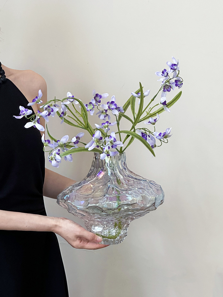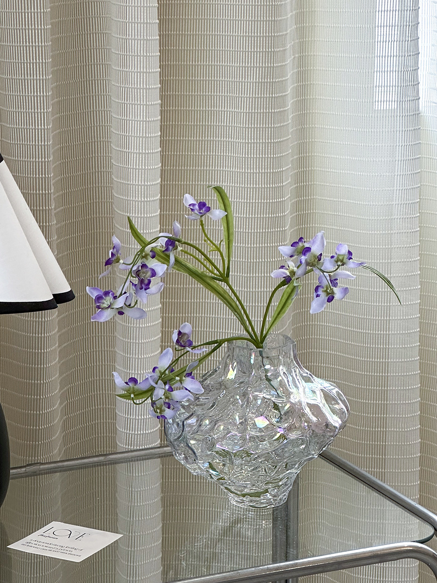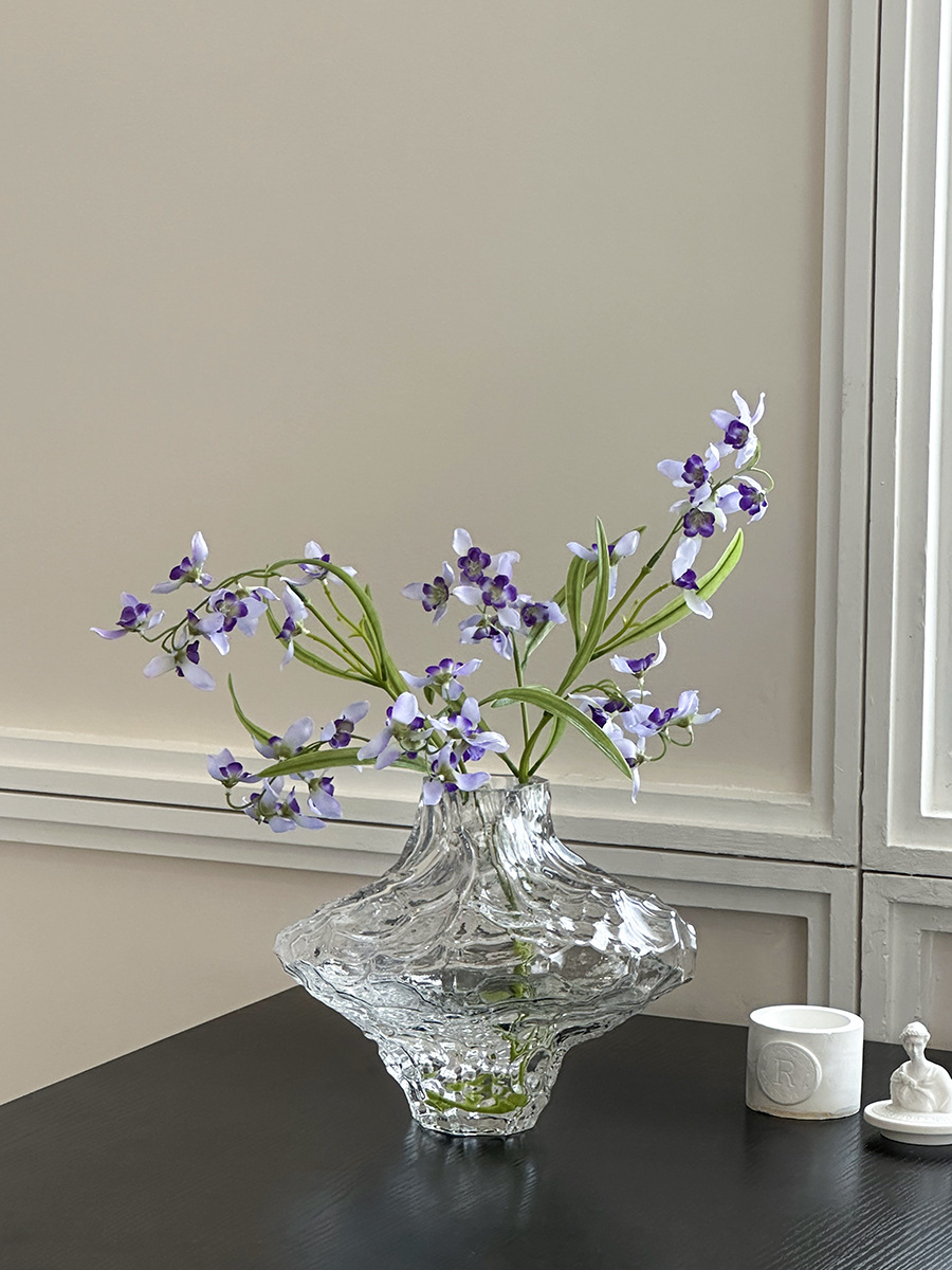 • 투명한 계곡 꽃병(대형) + 작은 보라색 난초(2다발)