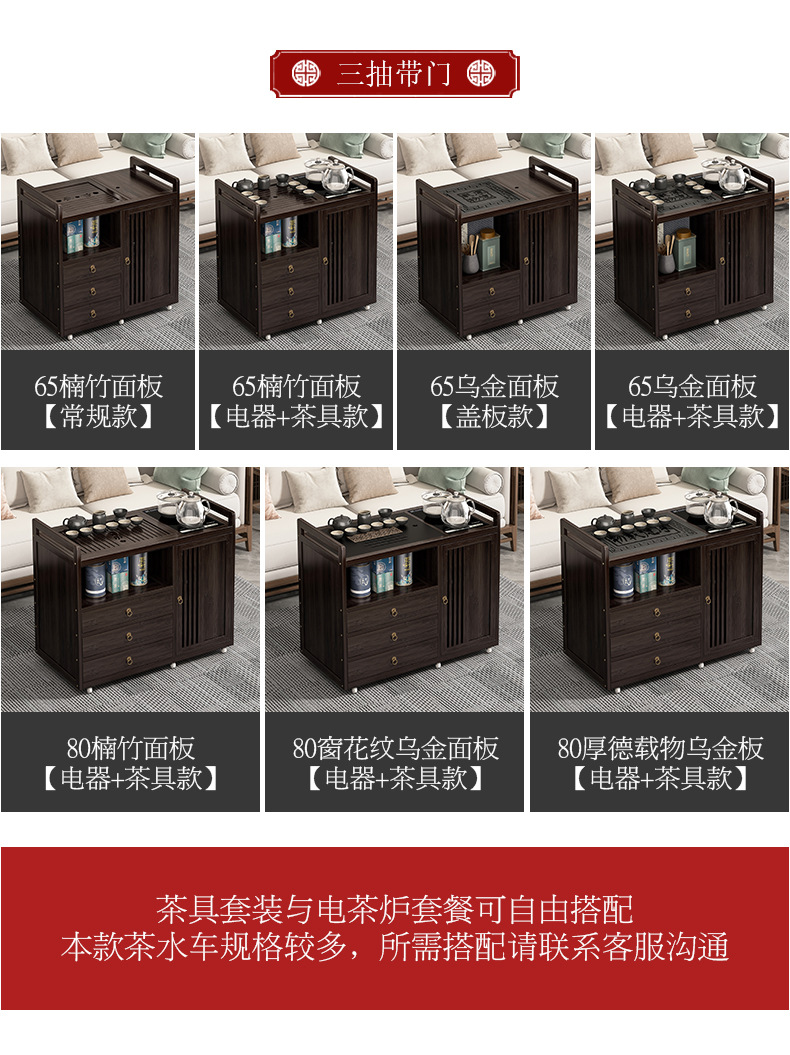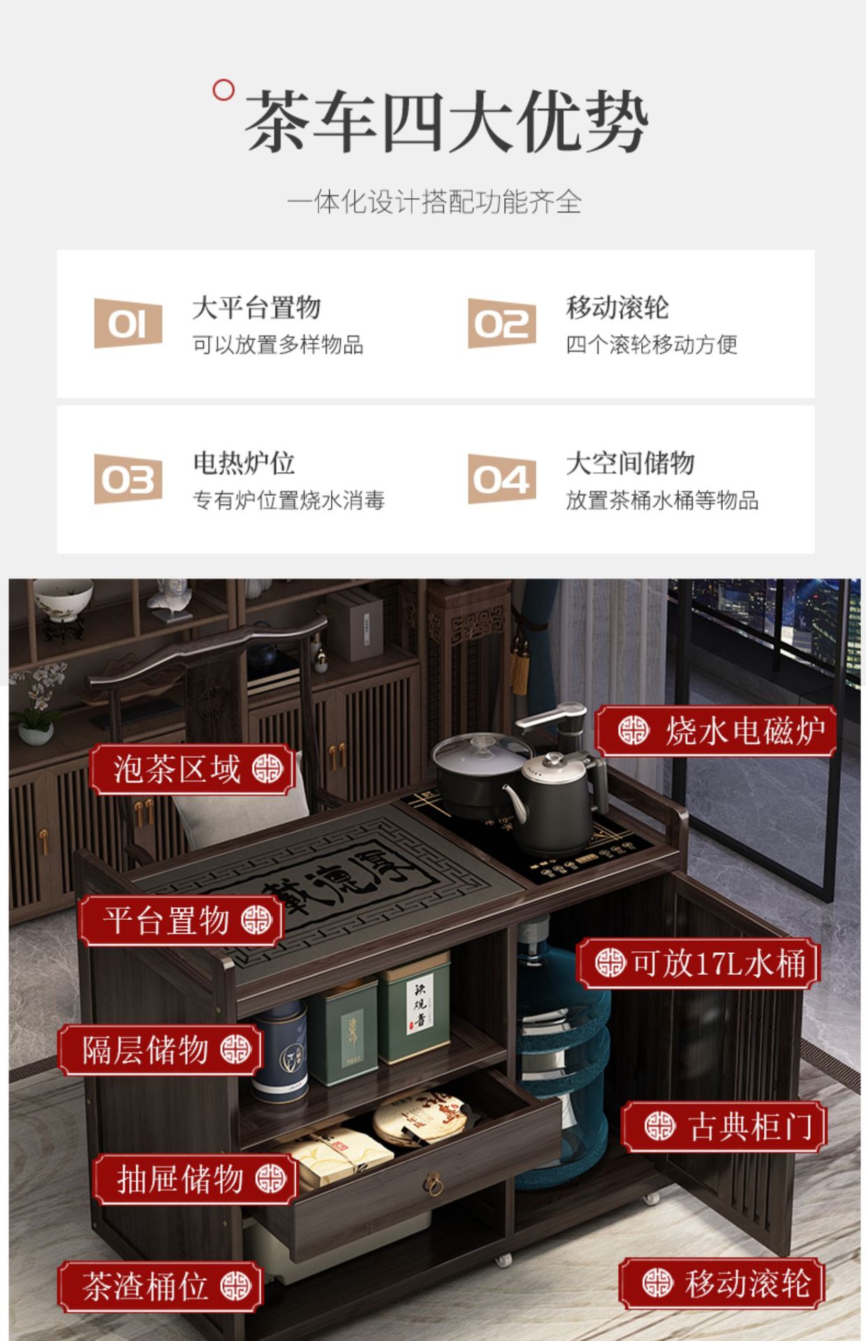모바일 작은 차 테이블 도매 차 테이블 단단한 나무 차 카트 주전자 바퀴 차 사이드 테이블 쿵푸 차 트레이와 통합 차 캐비닛