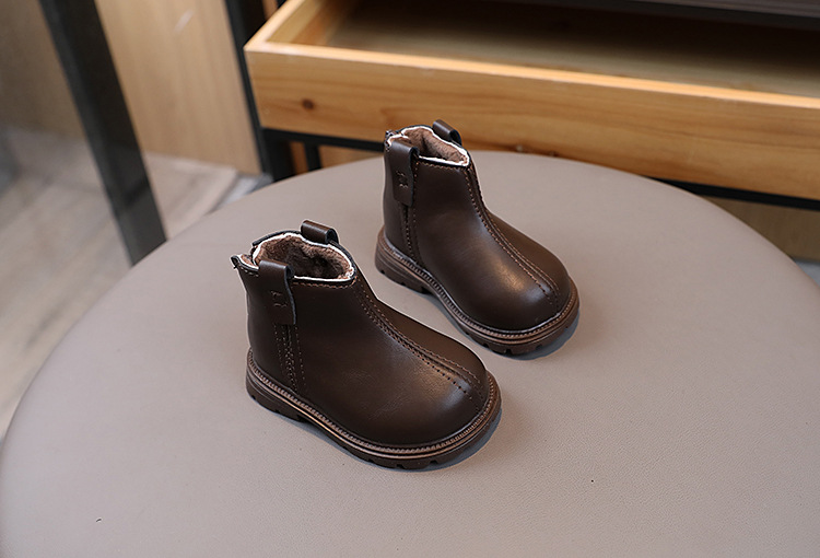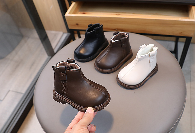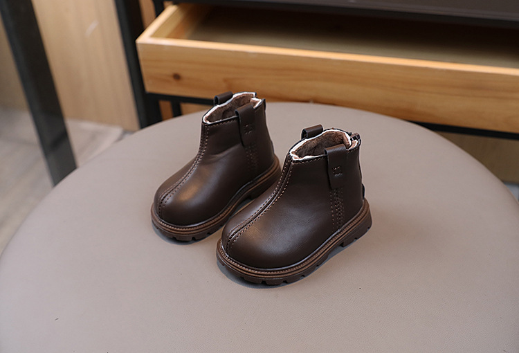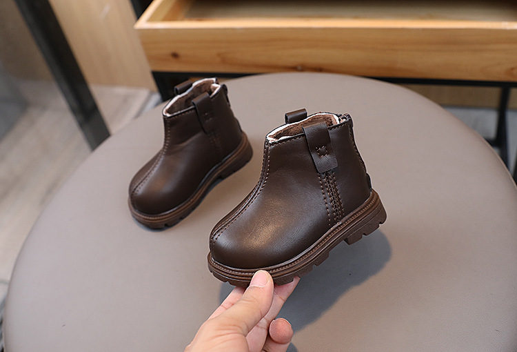 가을과 겨울 새로운 어린이 마틴 부츠 1-2-3 세 소녀 미끄럼 방지 부드러운 바닥 유아 신발 소년 따뜻한 짧은 부츠 가죽 신발