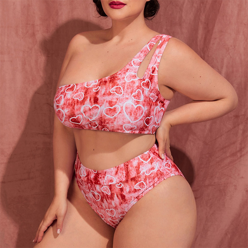 2024 새로운 국경 유럽 및 미국 어깨 인쇄 플러스 사이즈 수영복 여성 해변 온천 투피스 비키니 수영복