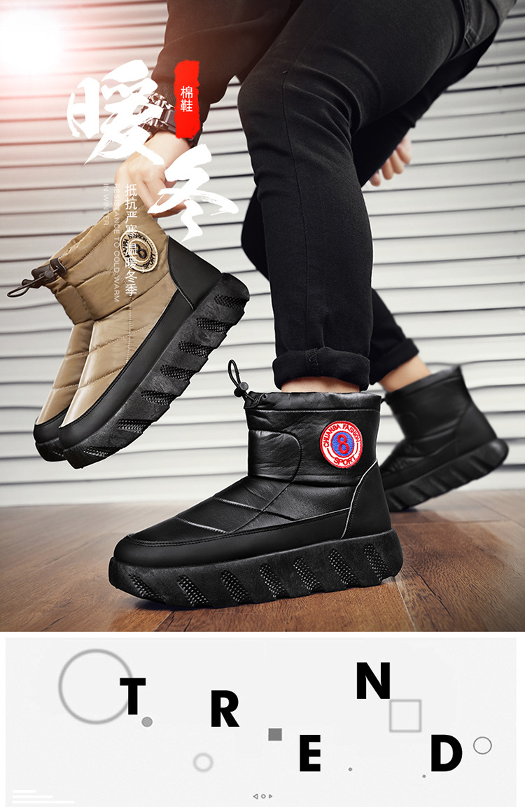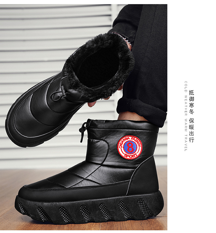 스노우 부츠 남성용 겨울 기모 감기 따뜻한 코튼 슈즈 모피 원피스 야외 방수 미끄럼 방지 대형 코튼 부츠