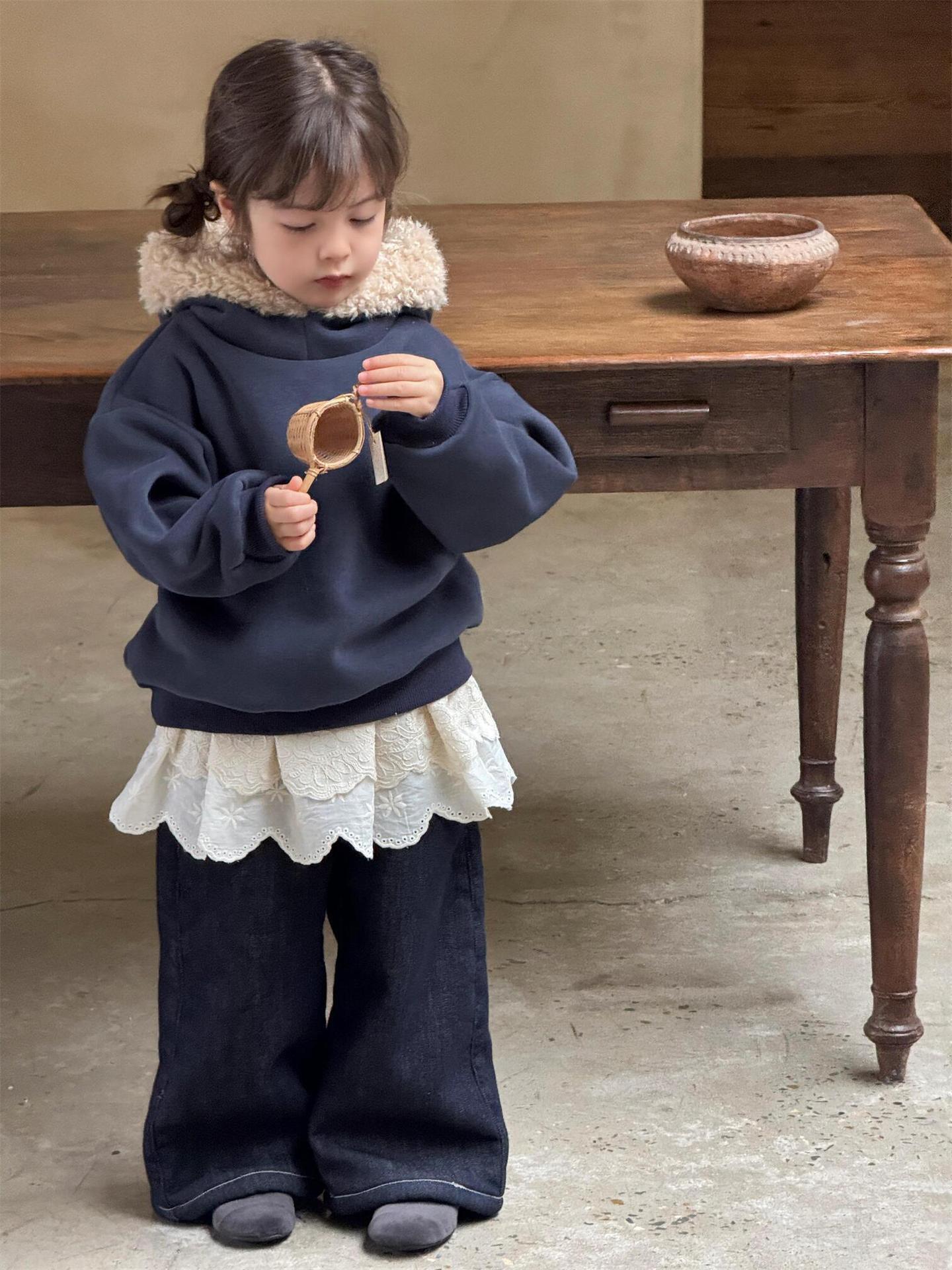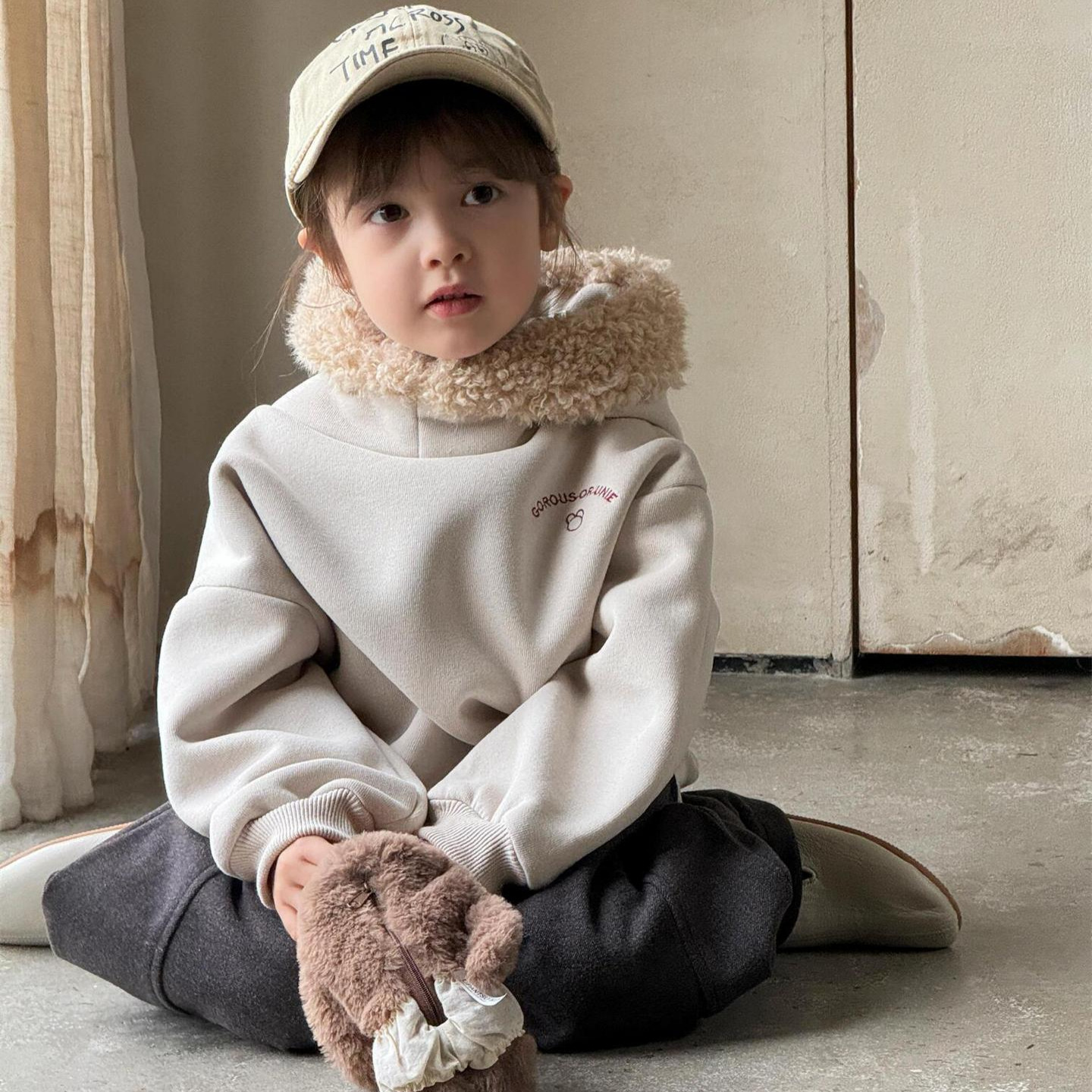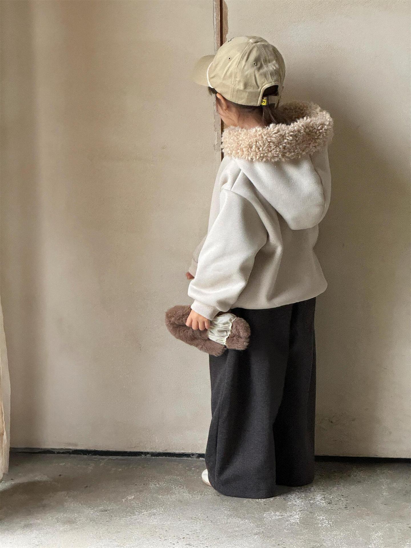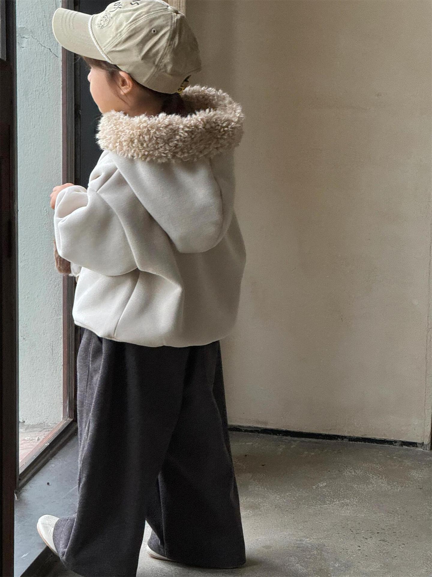 탑 에그 한국 아동복 2024 겨울 새 여아 스웨트 복합 알파카 두꺼운 모피 칼라 후드 탑스토어 가기