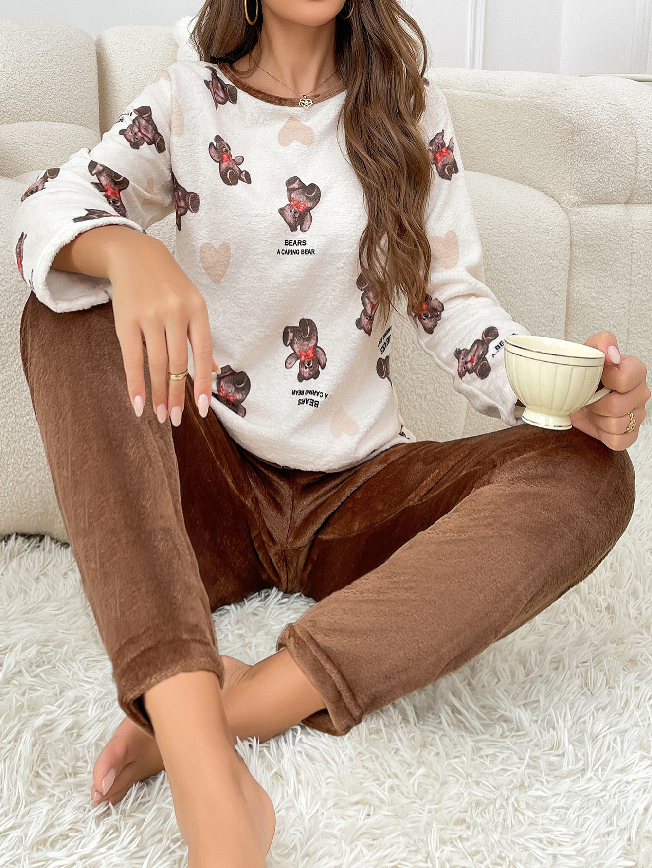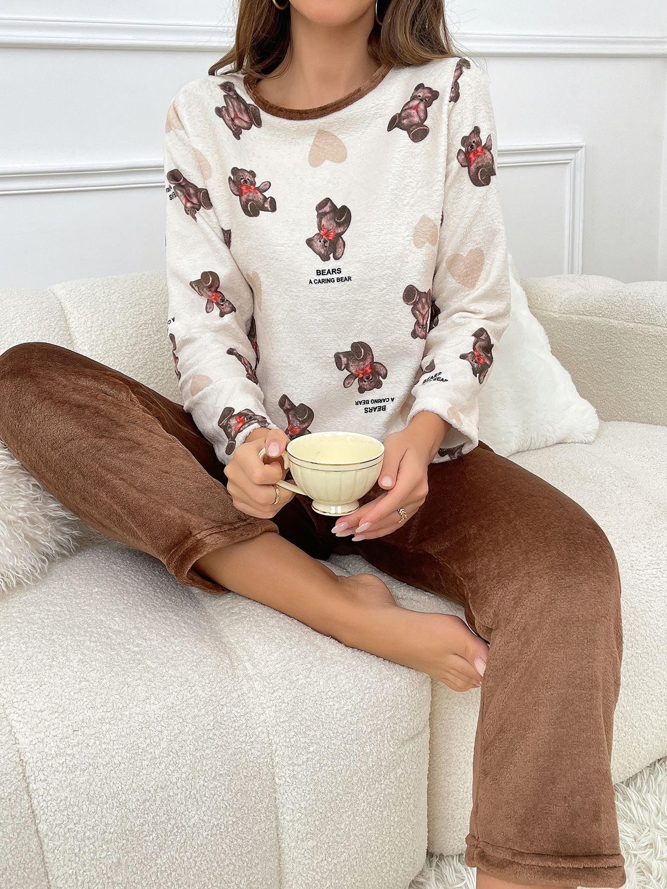 국경 간 가을과 겨울 신선한 캐주얼 만화 둥근 목 인쇄 따뜻한 부드러운 피부 친화적 인 정전기 방지 홈 잠옷스토어 가기