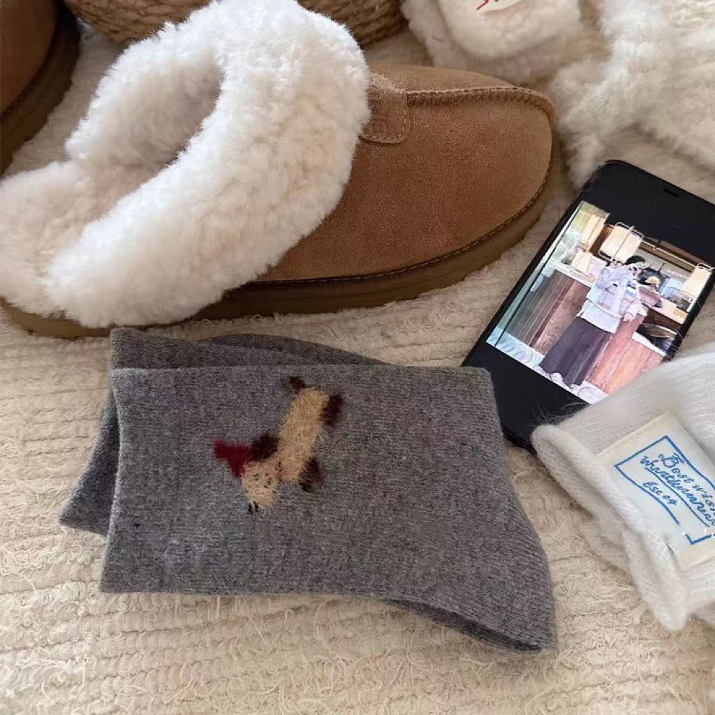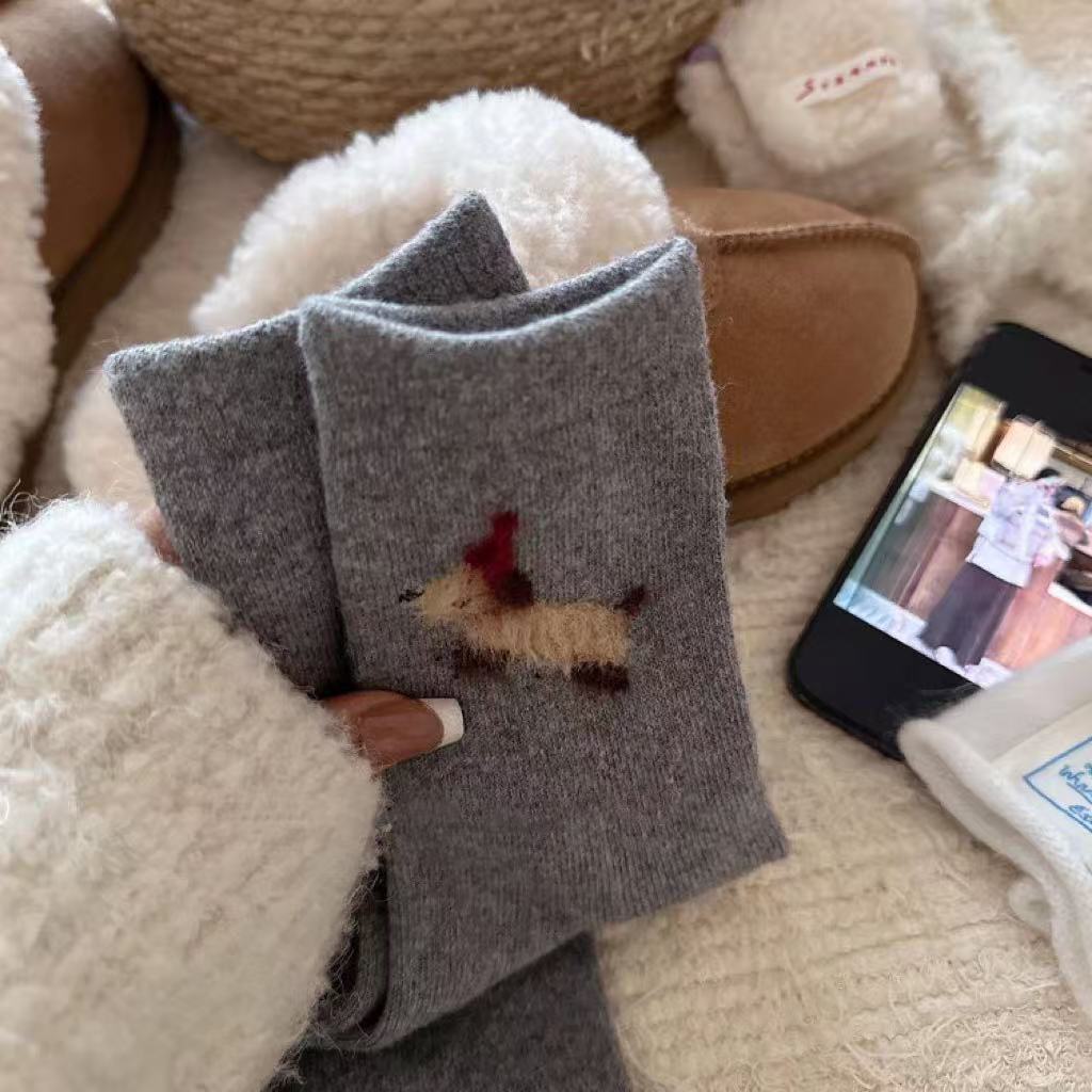 틈새 회색 가을 및 겨울 울 중간 튜브 양말 강아지 양말 대학 따뜻한 귀여운 소녀 높은 허리 더미 양말스토어 가기